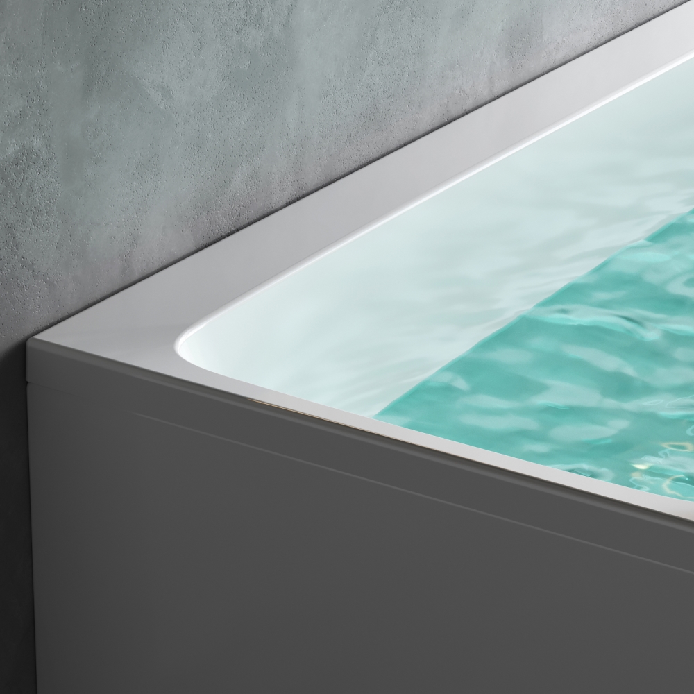 Широкий борт с одной стороны ванны добавляет дополнительное пространство для хранения. Теперь даже самое небольшое помещение может быть использовано оптимальным образом.
