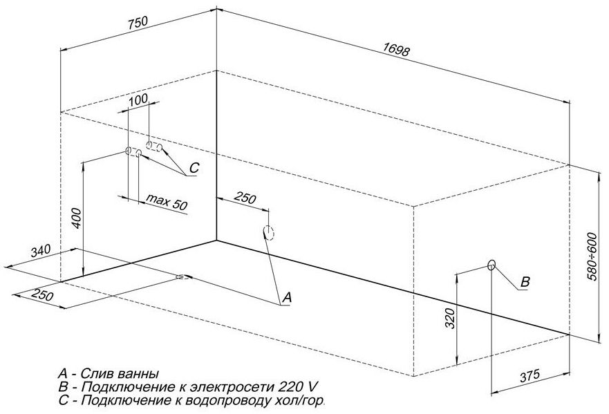 Комплект поставки: ванна.
