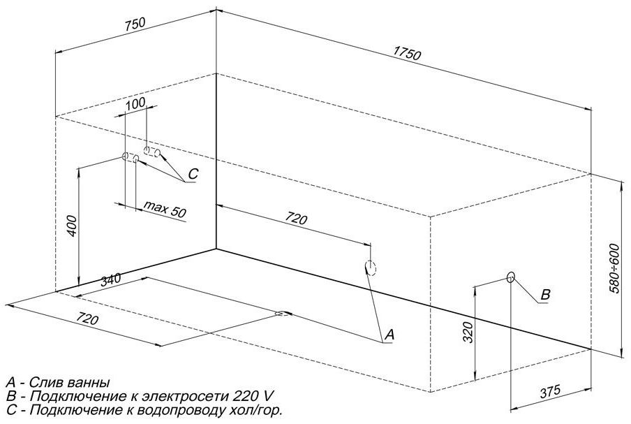 Комплект поставки: ванна.