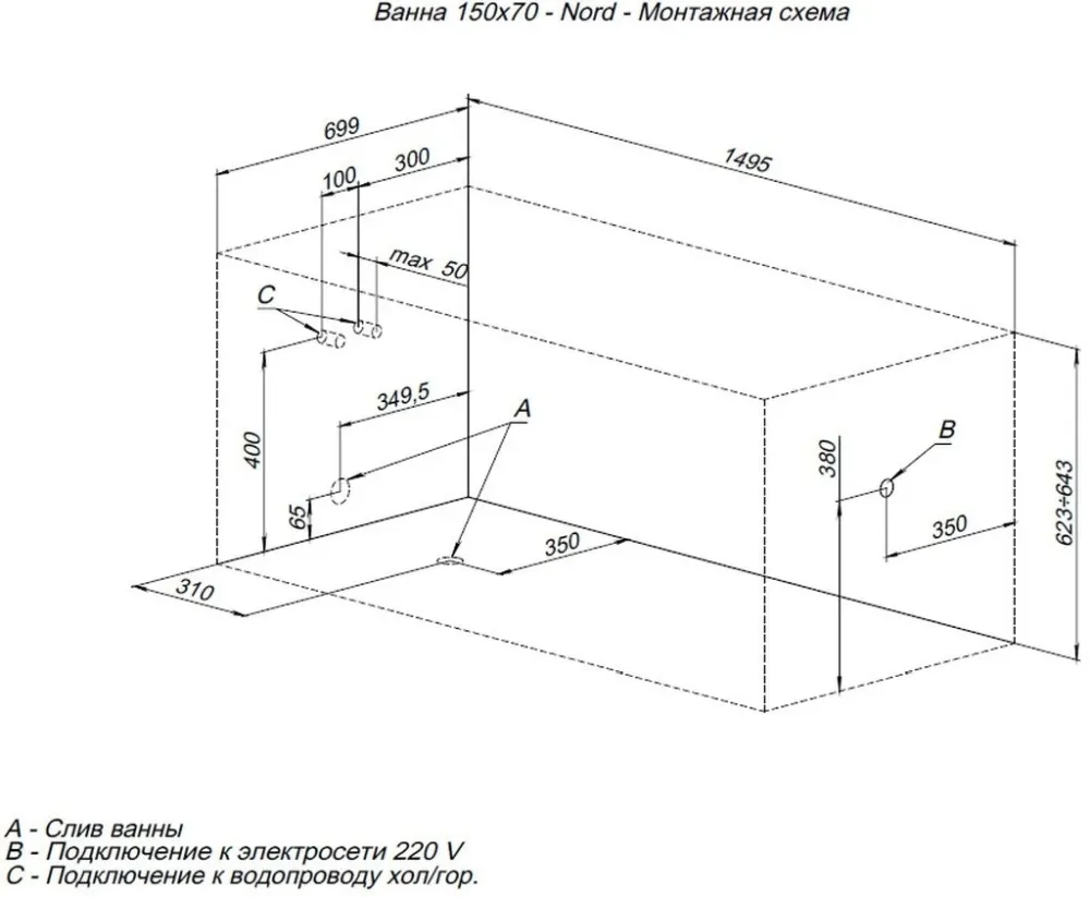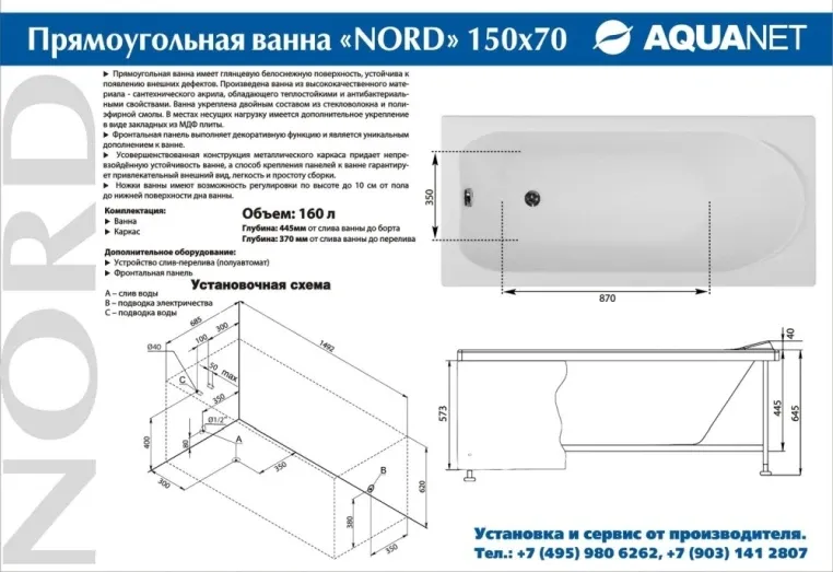 Акриловая ванна Aquanet Nord 00242401 150x70 с каркасом