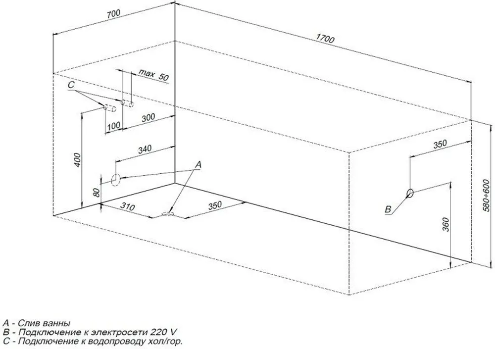 | Система гидромассажа | установка не предусмотрена |