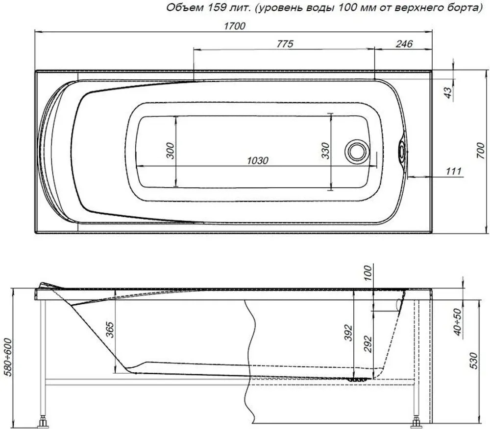 Комплект поставки: ванна, каркас.