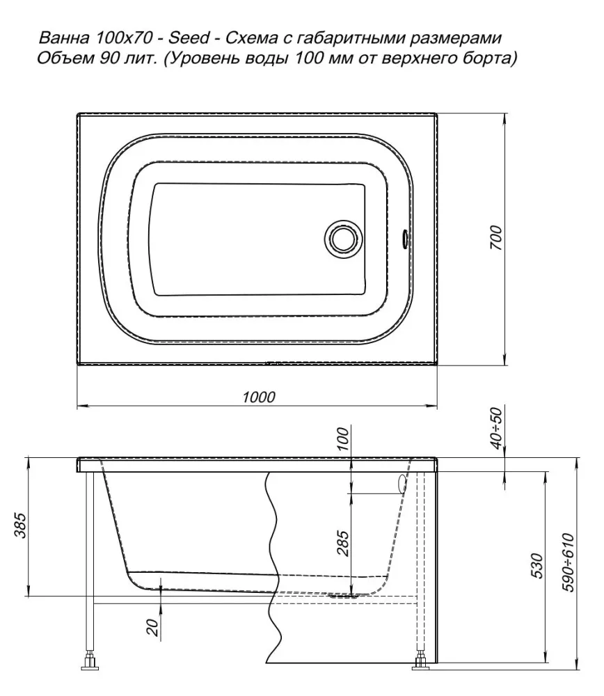 Акриловая ванна Aquanet Seed 00216658 100x70 с каркасом