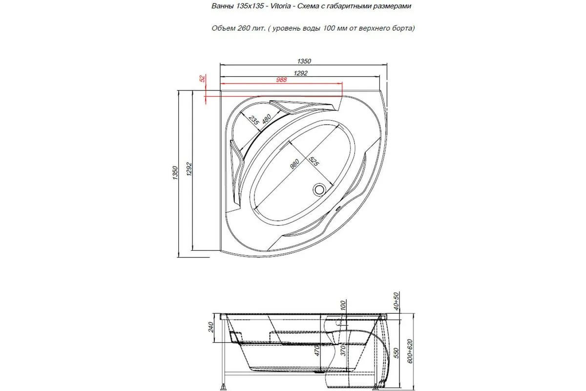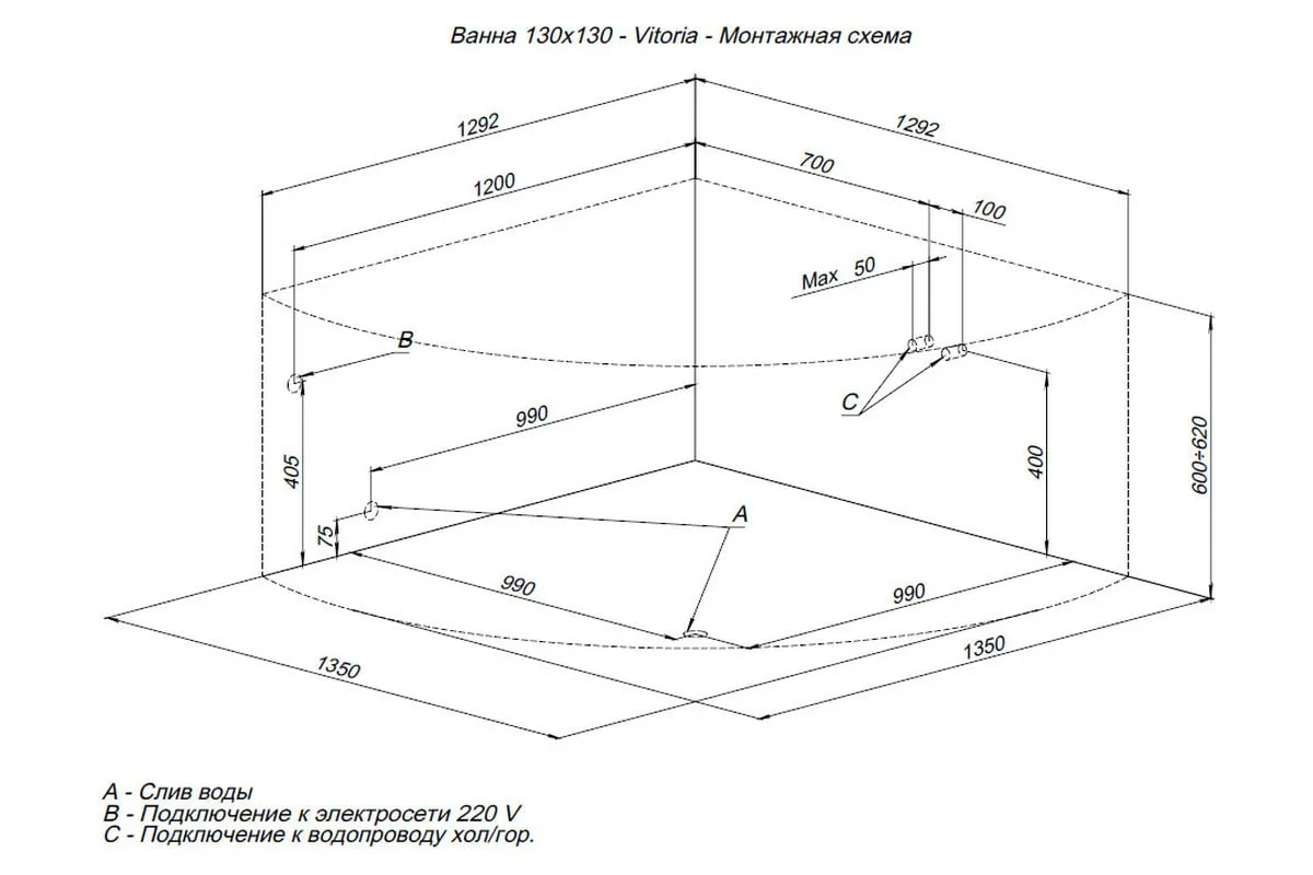 Акриловая ванна Aquanet Vitoria 00205371 135x135 с каркасом