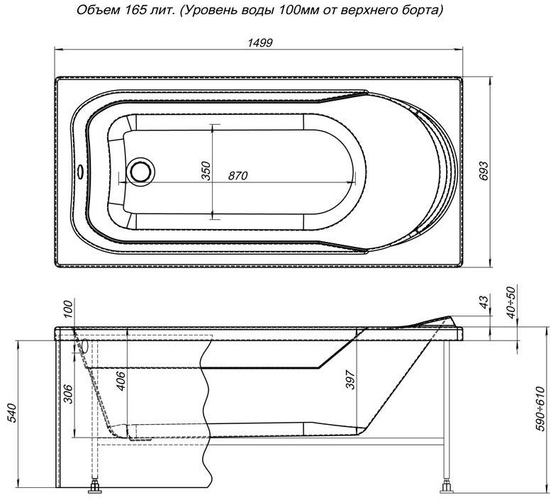 Комплект поставки: ванна.
