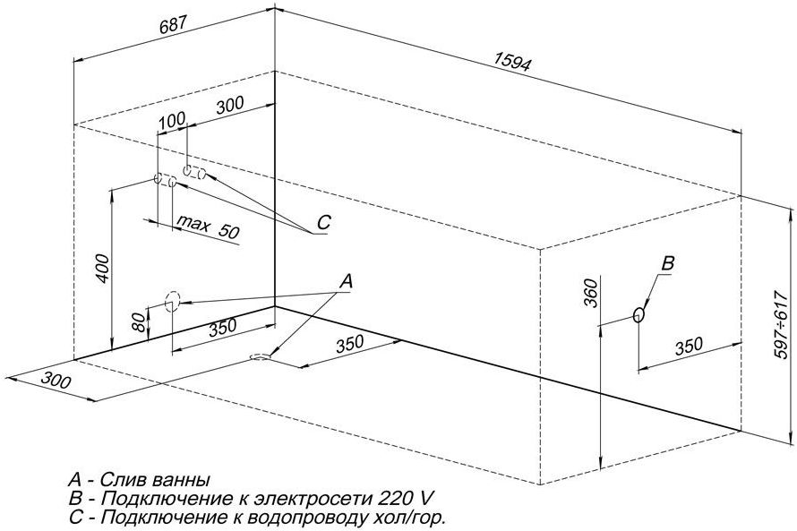 | Система гидромассажа | установка не предусмотрена |