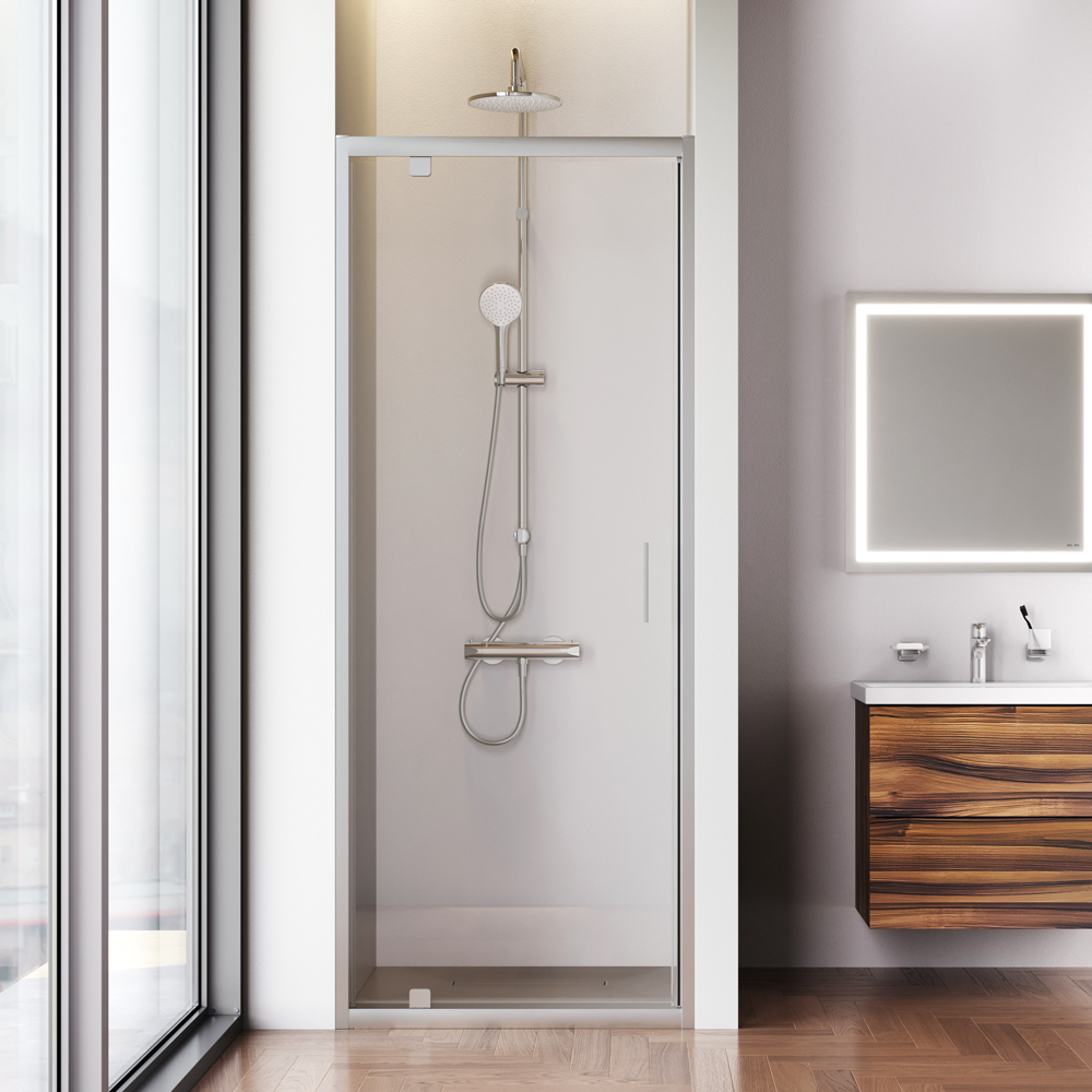 Универсальный монтаж (на левую/правую сторону) позволяет установить дверь в помещениях с различной планировкой. Надежные металлические петли гарантируют плавное открывание двери и увеличивают срок службы. Дверь выполнена из сверхпрочного закаленного стекла толщиной 6 мм.