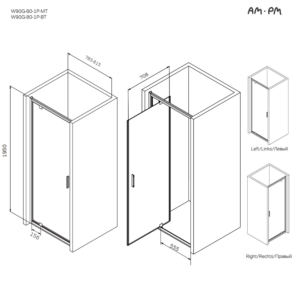 Душевая дверь AM.PM Gem 80x195 W90G-80-1P-MT профиль хром