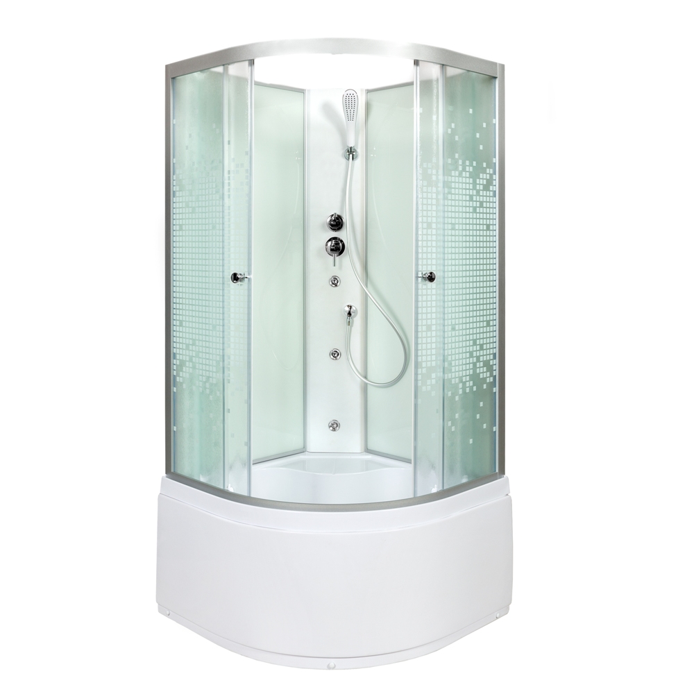 Комплект поставки: душевая кабина, душевой гарнитур, переключатель режимов, смеситель