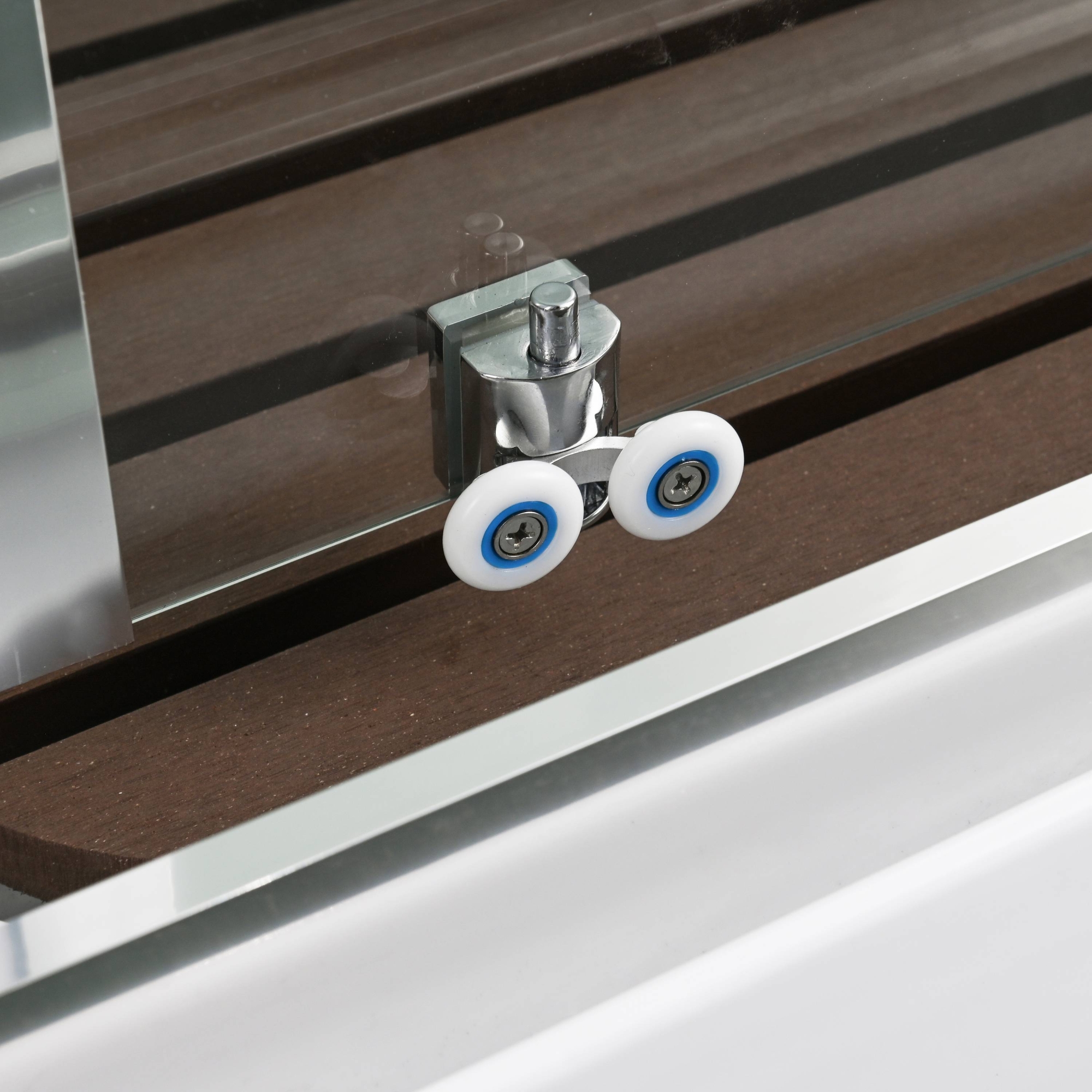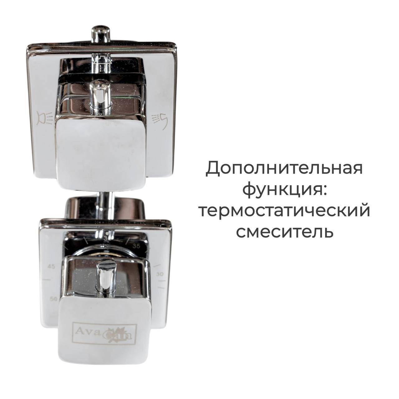 Стильная душевая кабина AvaCan сочетает в себе высокую функциональность, практичность и надежность. При изготовлении применяется безопасное закаленное стекло, надежно фиксируемое алюминиевым профилем.Профиль сделан из алюминия повышенной прочности. Сборка без силикона (увеличивает срок службы, защищает от протечек), внутренняя сборка (облегчает установку и ревизию; позволяет установить в ограниченном пространстве и обойтись без демонтажа других сантехнических приборов), смеситель резьбовой (без хомутов). Двойные металлические ролики дверей (распределение нагрузки на два ролика, увеличивают срок службы). Душевая штанга(позволяет регулировать по высоте ручную лейку), ручная арома-лейка с витамином С (картридж в комплекте,есть возможность замены или удаления картриджа), полочки(из стекла, с ограничителем), сифон с гидрозатвором, сенсорный пульт управления с функциями: блютуз, LED подсветка, радио, вытяжка, гидромассаж спины, тропический (верхний) душ.