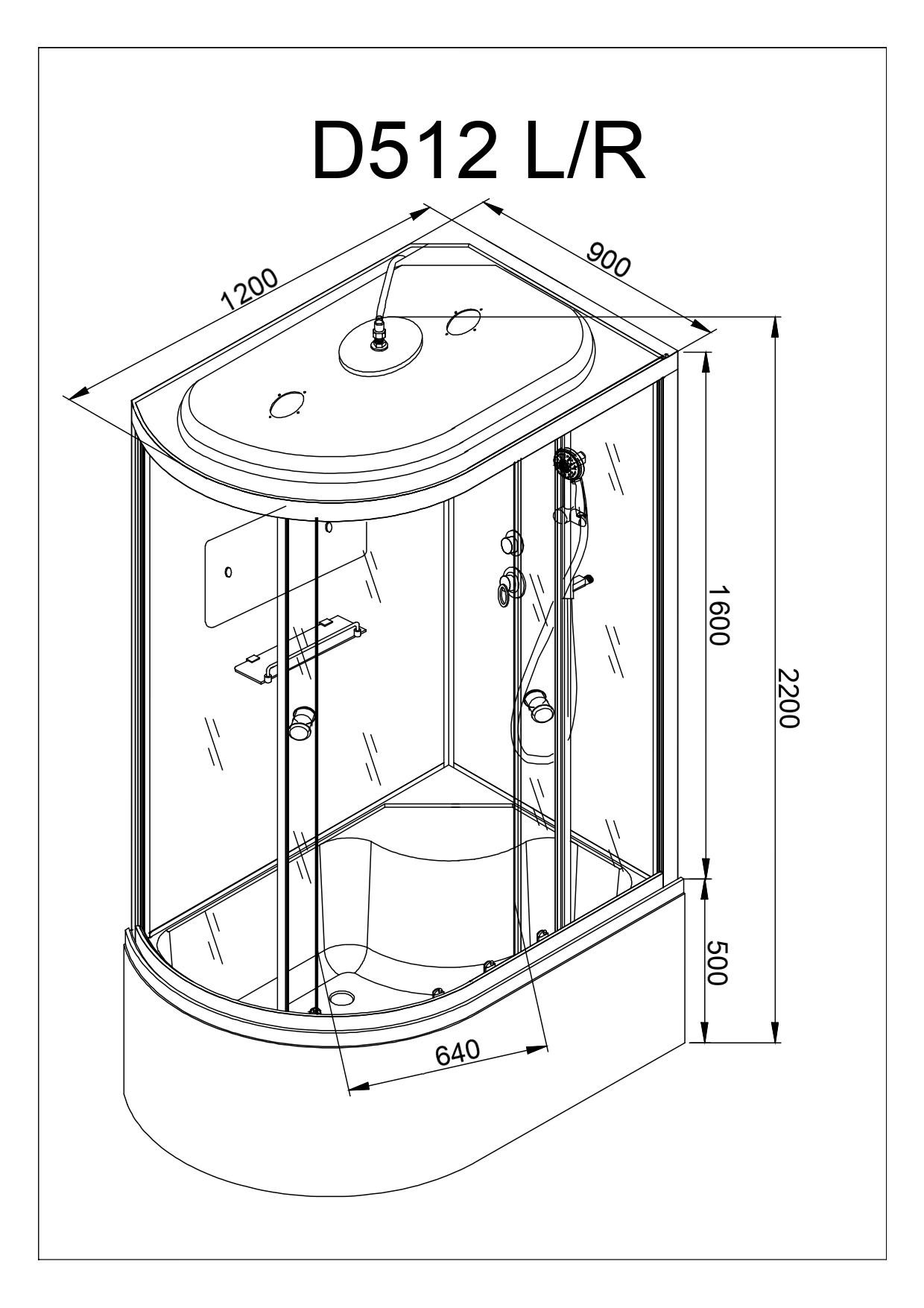 Стильная душевая кабина с внутренней сборкой AvaCan D512S R сочетает в себе высокую функциональность, практичность и надежность. Для изготовления применяют безопасное закаленное стекло толщиной 4 мм, надежно фиксируемое алюминиевым профилем. Цвет профиля хром. В комплекте встроенное сидение, сифон, полочка, зеркало, смеситель, переключатель режимов, передний съемный экран, донный клапан (клик-клак), душевой гарнитур, тропический (верхний) душ, вентиляция