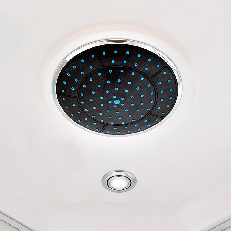 Комплект поставки: душевая кабина, вентиляция, деревянная вставка в поддон, душевой гарнитур, зеркало, полочки, радио, сенсорный пульт управления, смеситель, тропический (верхний) душ