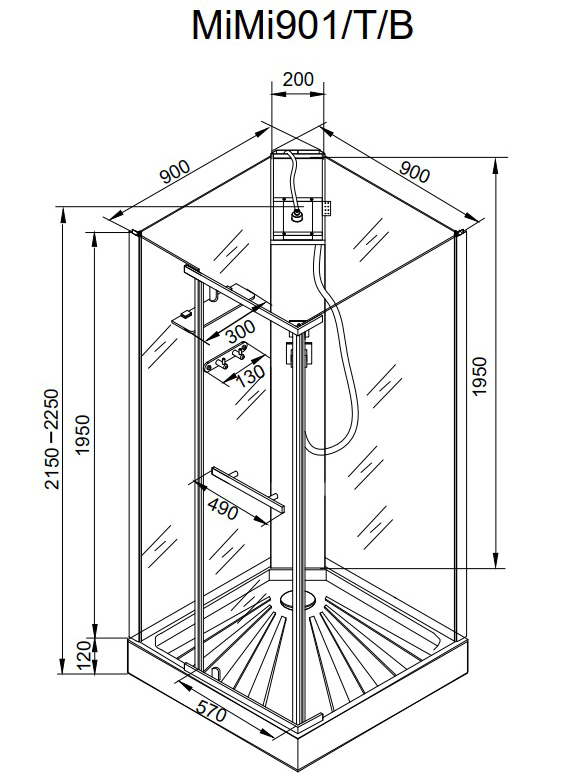 Душевая кабина MiMi90T с регулируемой высотой верхнего тропического душа бренда Ceruttispa.