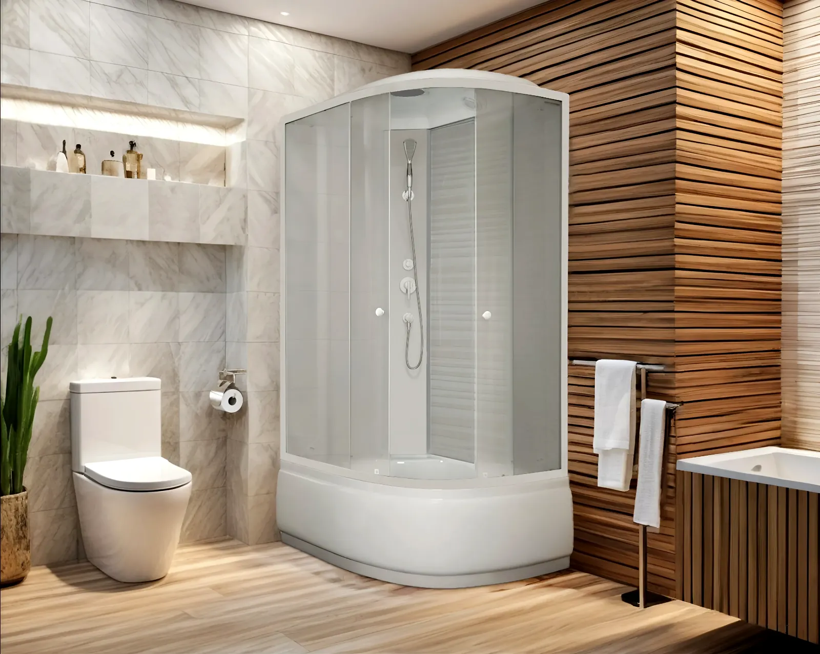 Компактность. Одним из главных достоинств душевых кабин является то, что их установка может значительно сэкономить пространство в санузле. Если площадь вашей ванной комнаты меньше 3 м², покупка кабины — единственное верное решение.
