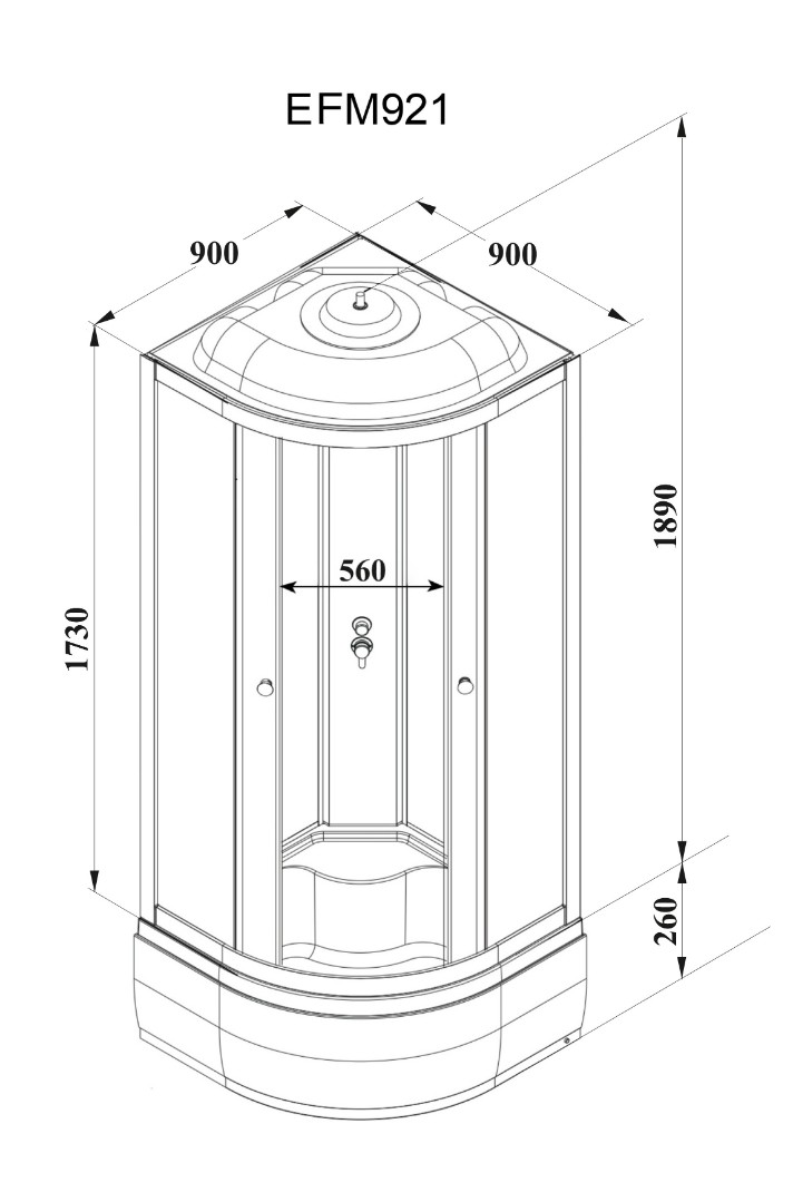 Крыша, поддон и экран выполнены из белого ABS-пластика,