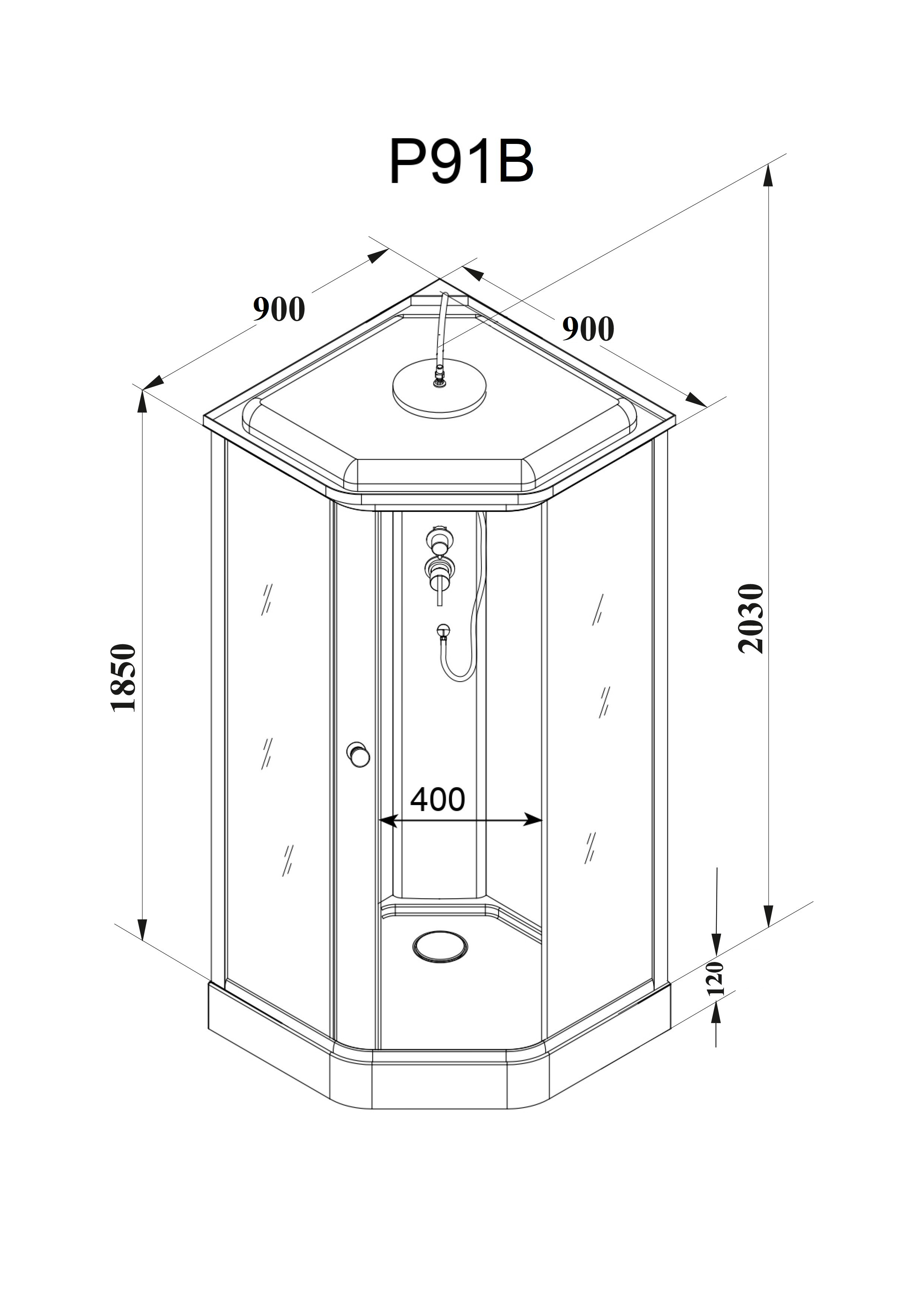 Душевая кабина P91B бренда PARLY, размер 90х90х215см