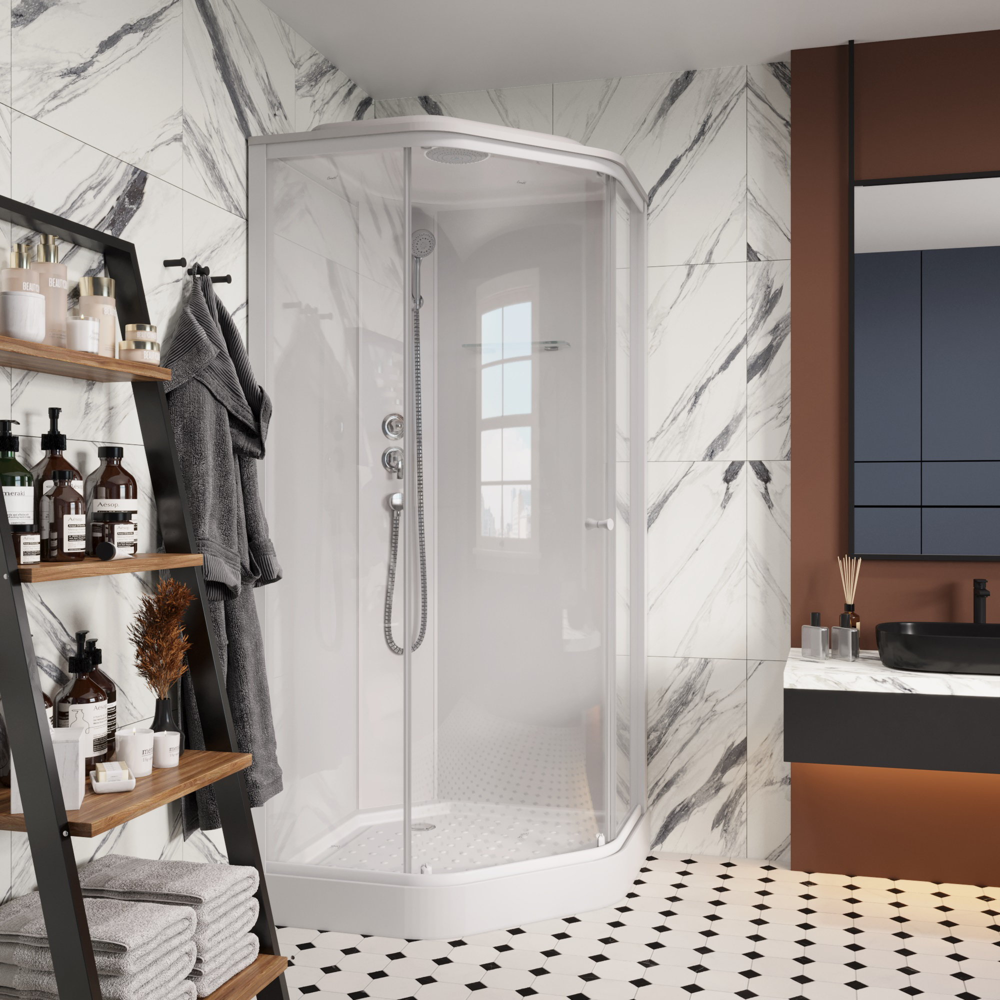Поддон: белый, низкий, трапециевидный, рифленый.