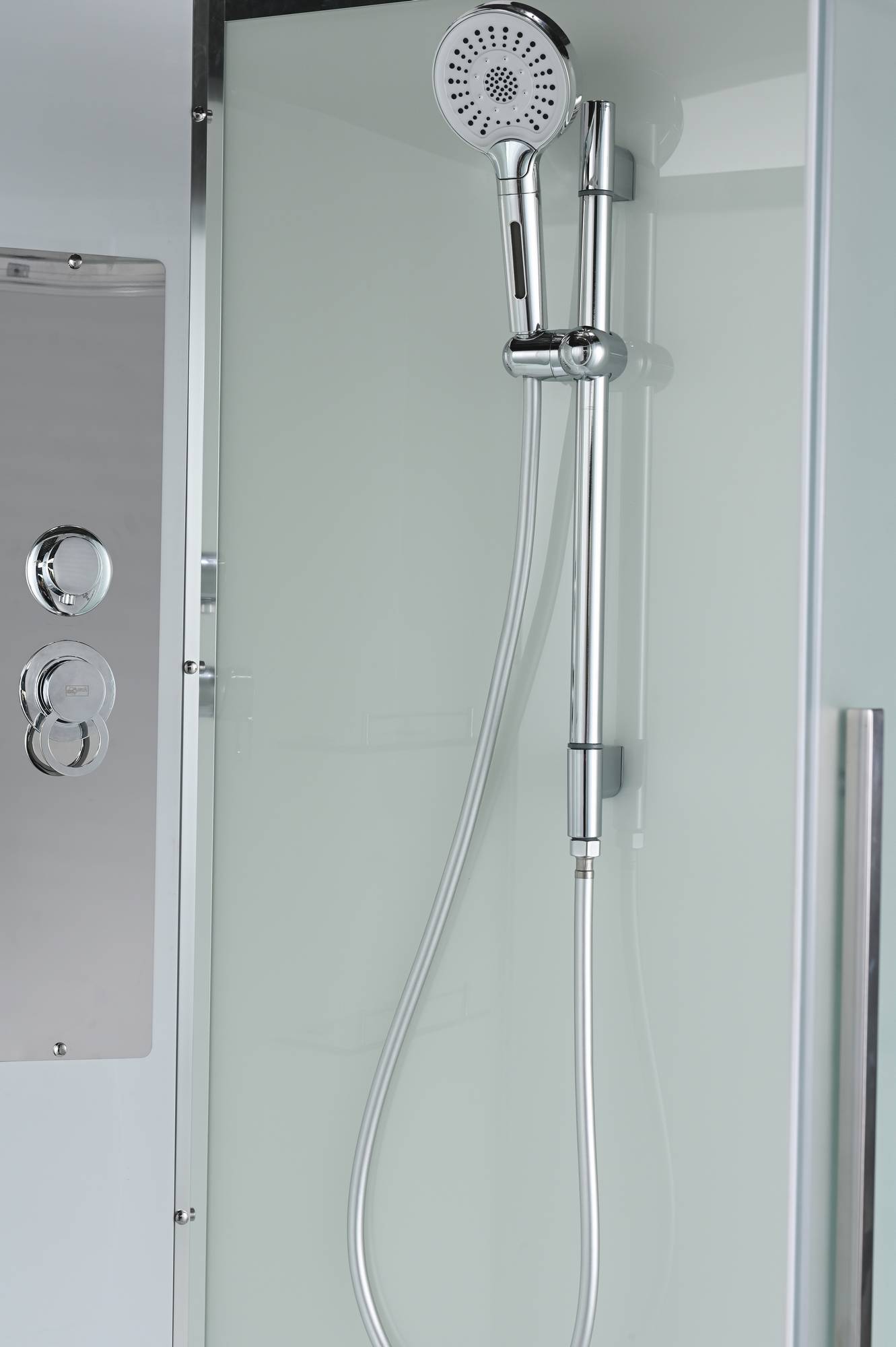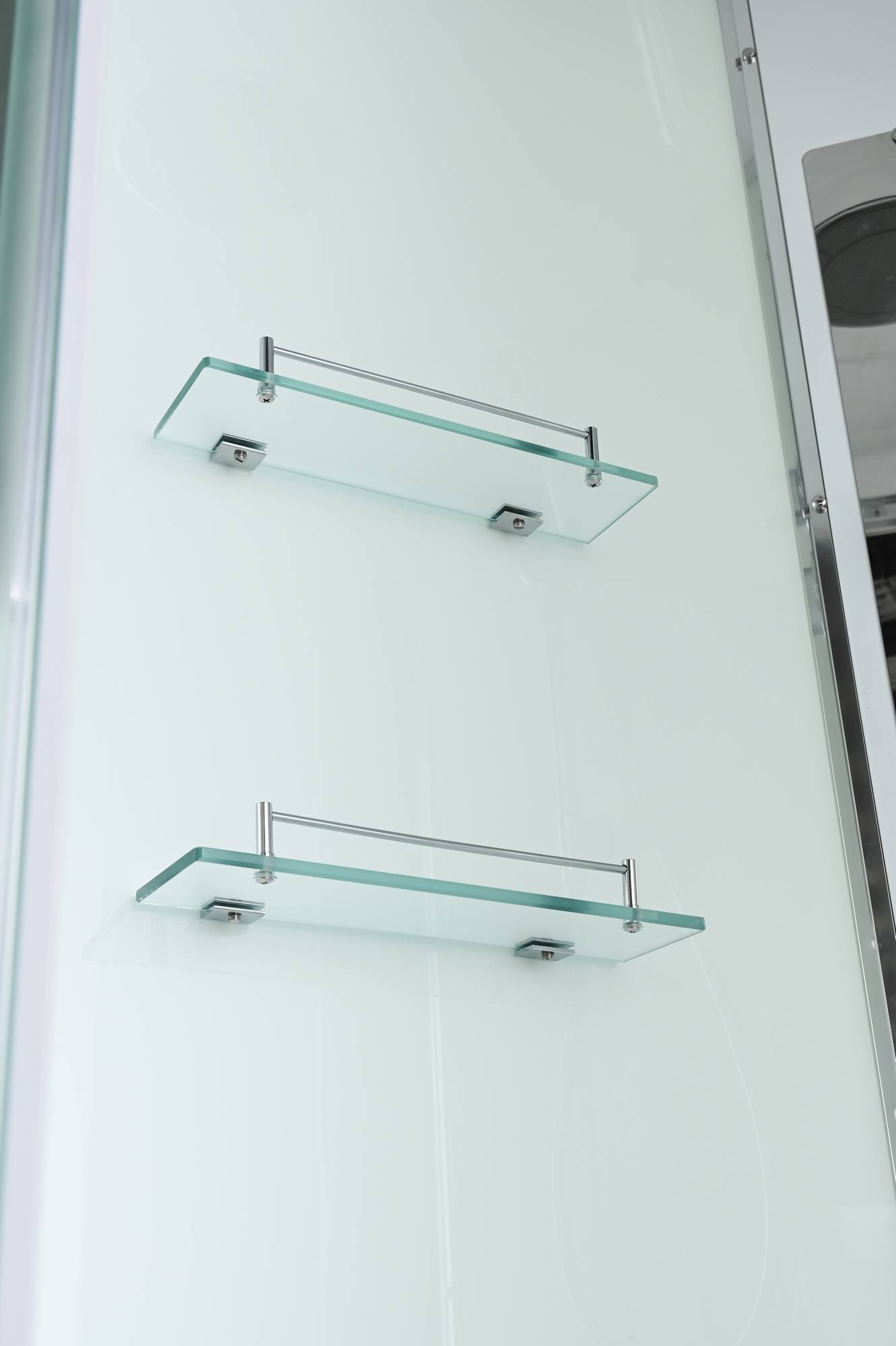 Комплект поставки: душевая кабина, сифон, переключатель режимов, полочки, резьбовой смеситель, ручки дверей из нержавейки, арома-лейка с витамином C, душевая штанга