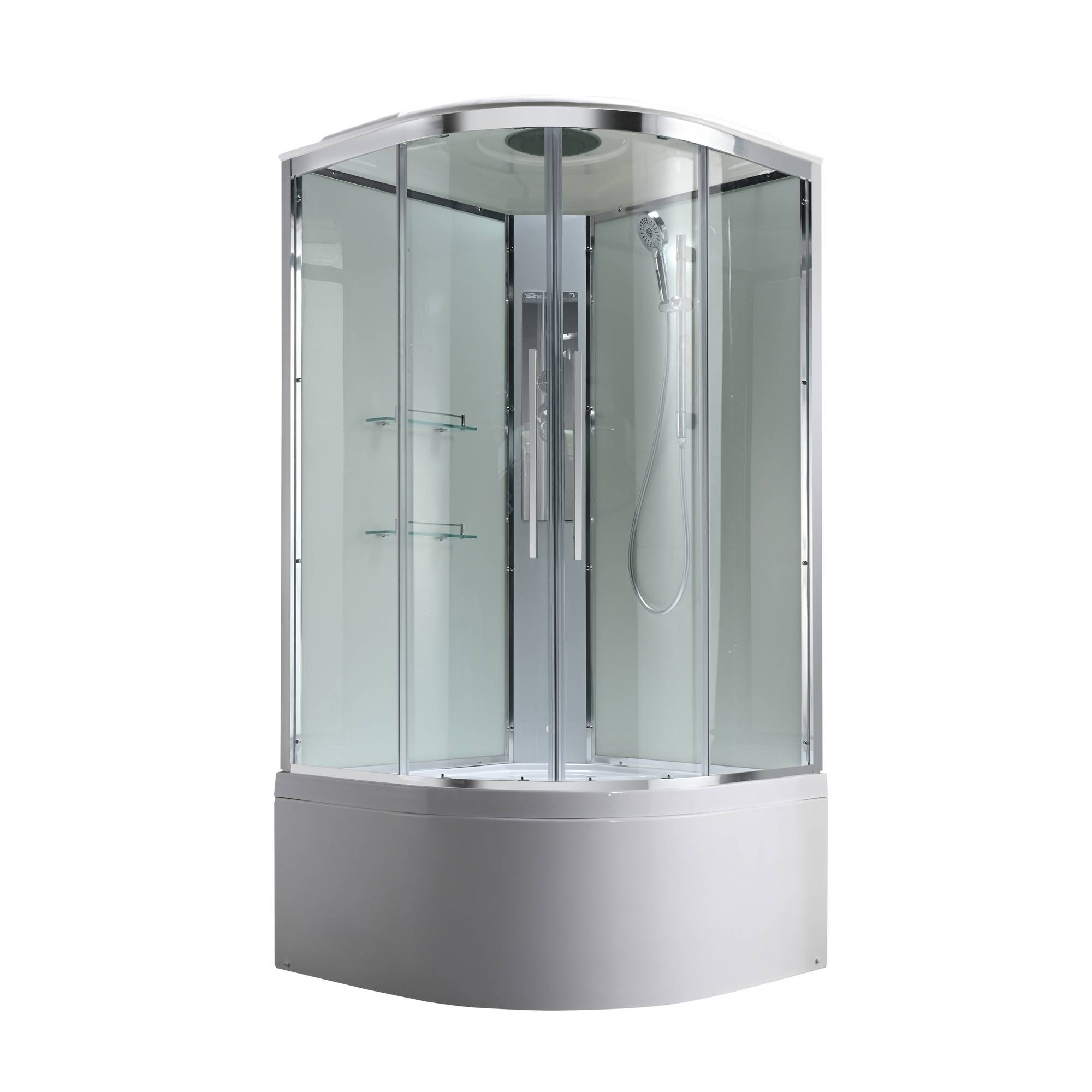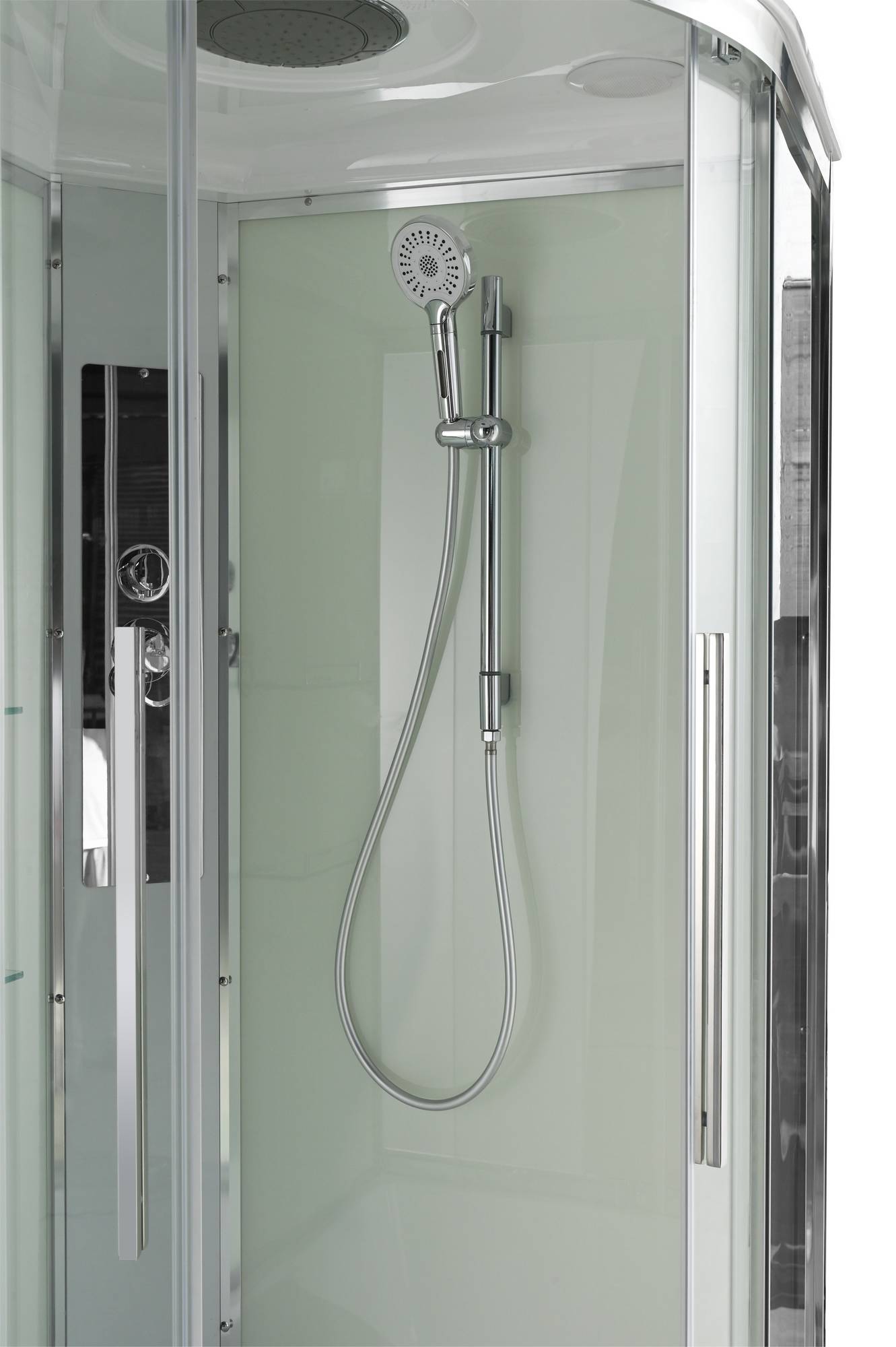 | Оснащение | душевая кабина / сифон / переключатель режимов / полочки / резьбовой смеситель / тропический (верхний) душ / ручки дверей из нержавейки / арома-лейка с витамином C / душевая штанга |