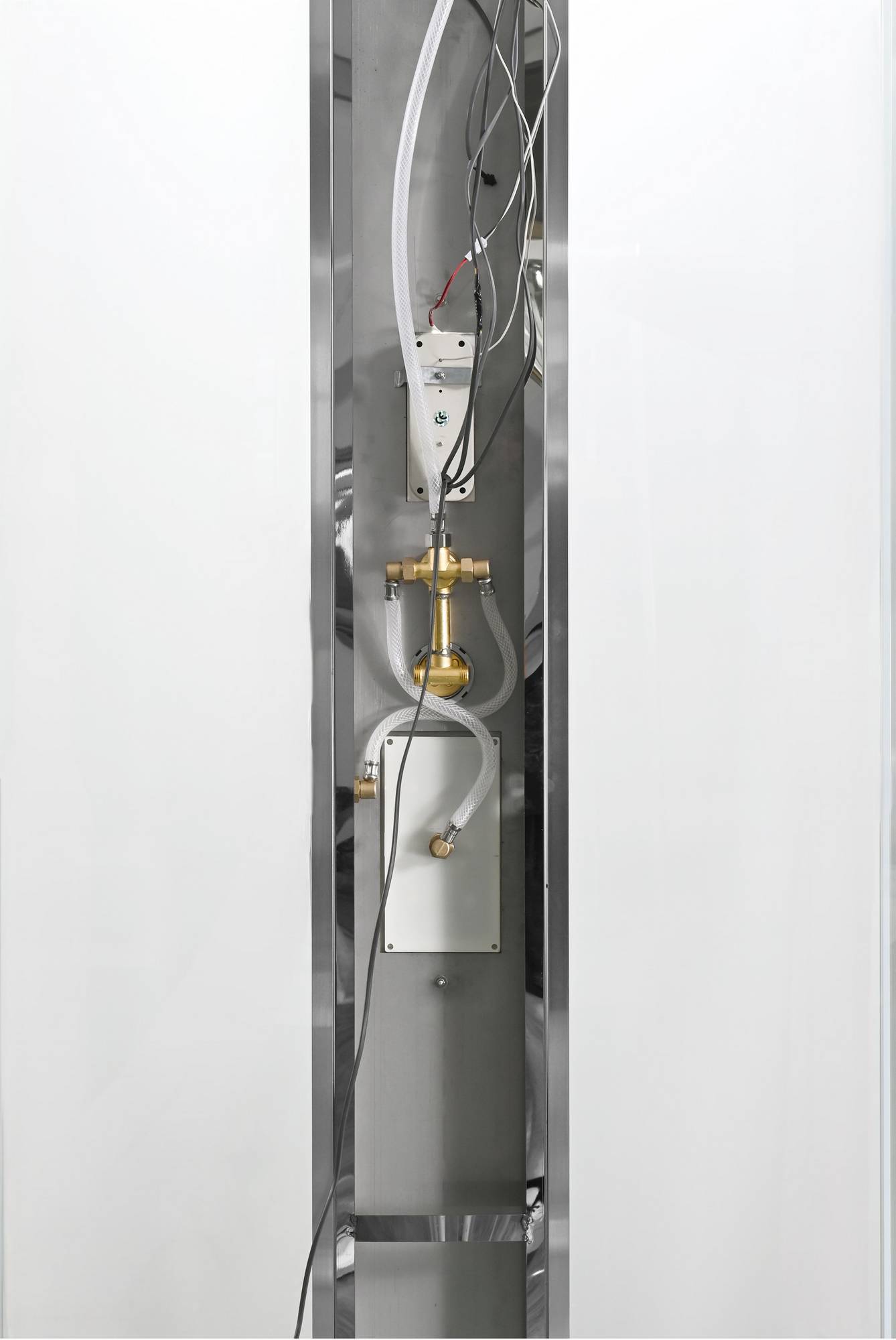 Комплект поставки: душевая кабина, блютуз, led подсветка, радио, вытяжка, гидромассаж спины, сифон, переключатель режимов, полочки, резьбовой смеситель, тропический (верхний) душ, ручки дверей, центральная панель из нержавейки, арома-лейка с витамином C, душевая штанга