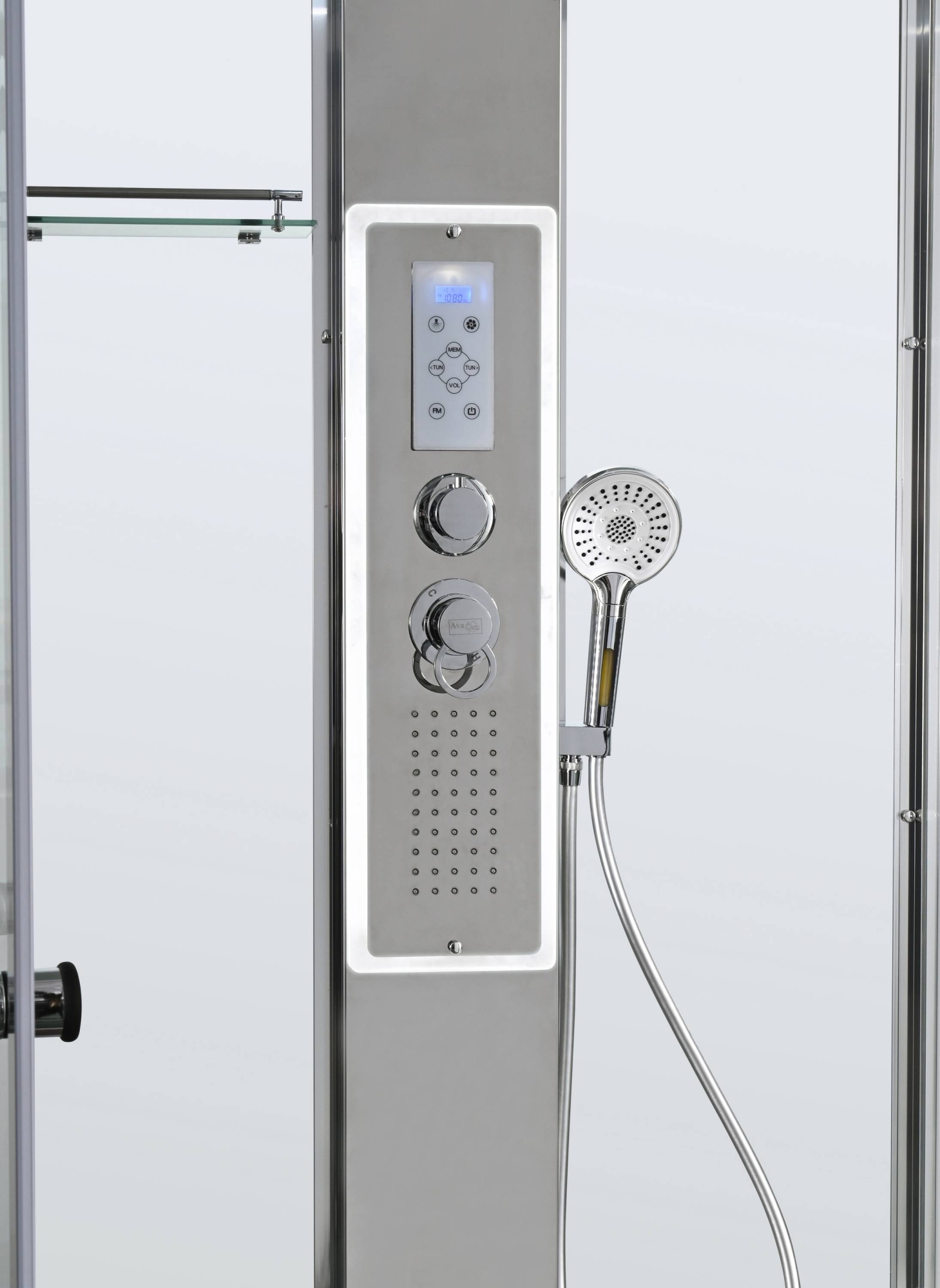 Стильная душевая кабина AvaCan сочетает в себе высокую функциональность, практичность и надежность. При изготовлении применяется безопасное закаленное стекло, надежно фиксируемое алюминиевым профилем.Профиль сделан из алюминия повышенной прочности. Сборка без силикона (увеличивает срок службы, защищает от протечек), внутренняя сборка (облегчает установку и ревизию; позволяет установить в ограниченном пространстве и обойтись без демонтажа других сантехнических приборов), смеситель резьбовой (без хомутов).Двойные металлические ролики дверей (распределение нагрузки на два ролика, увеличивают срок службы). Душевая штанга(позволяет регулировать по высоте ручную лейку), ручная арома-лейка с витамином С (картридж в комплекте,есть возможность замены или удаления картриджа), полочки(из стекла, с ограничителем), сифон с гидрозатвором, сенсорный пульт управления с функциями: блютуз, LED подсветка, радио, вытяжка, гидромассаж спины, тропический (верхний) душ.