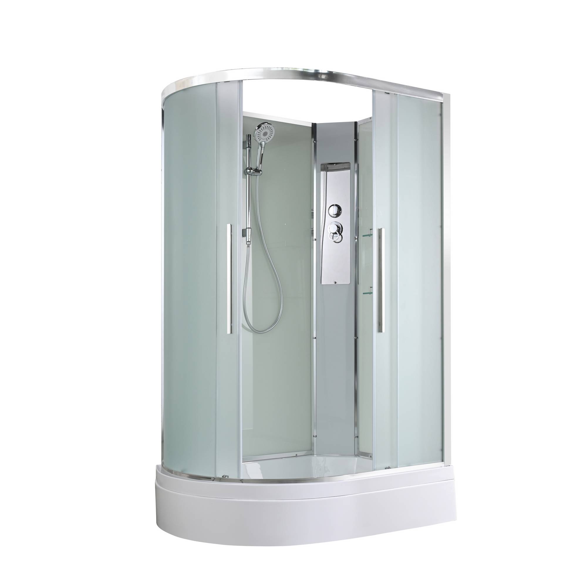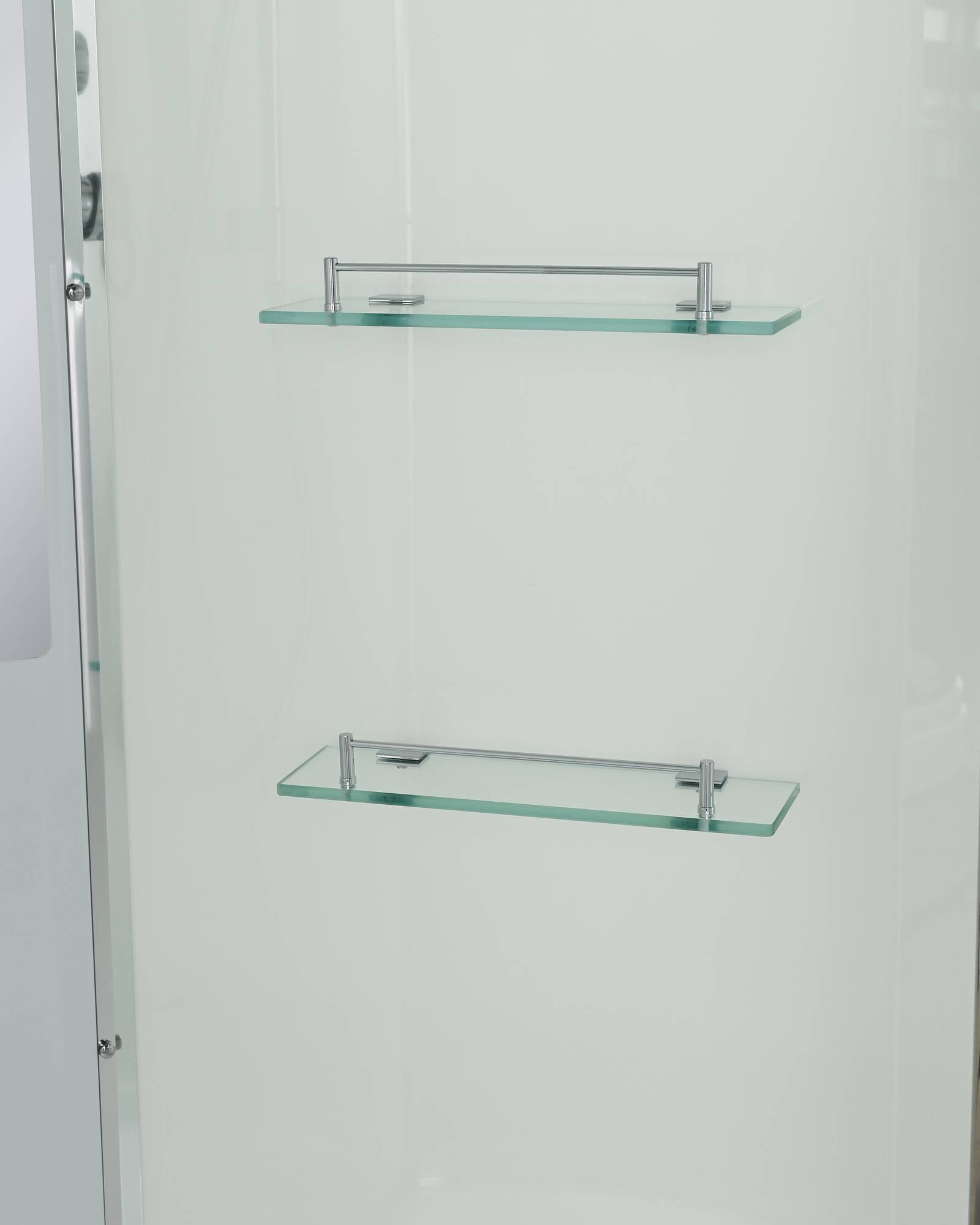 Комплект поставки: душевая кабина, сифон, переключатель режимов, полочки, резьбовой смеситель, ручки дверей из нержавейки, арома-лейка с витамином C, душевая штанга