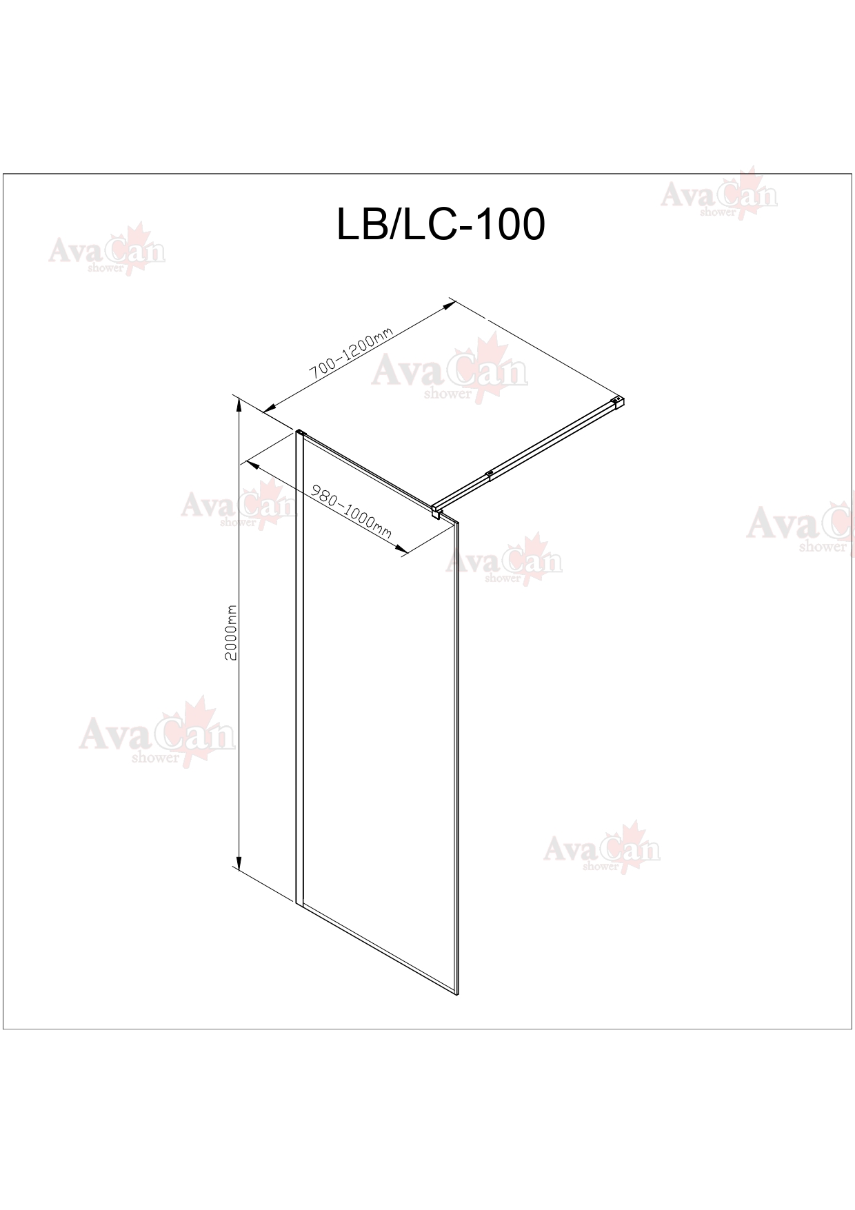 Душевая перегородка AvaCan 100x200 LB100MT профиль черный
