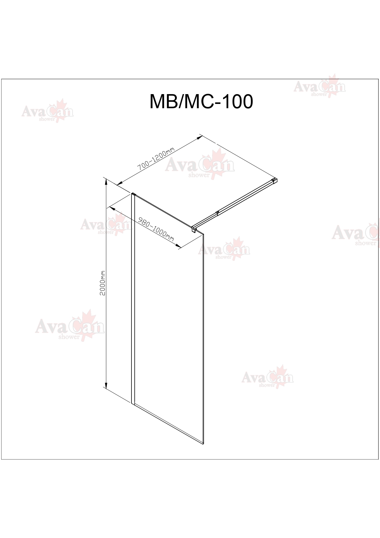 Душевая перегородка AvaCan 100x200 MC100 профиль хром