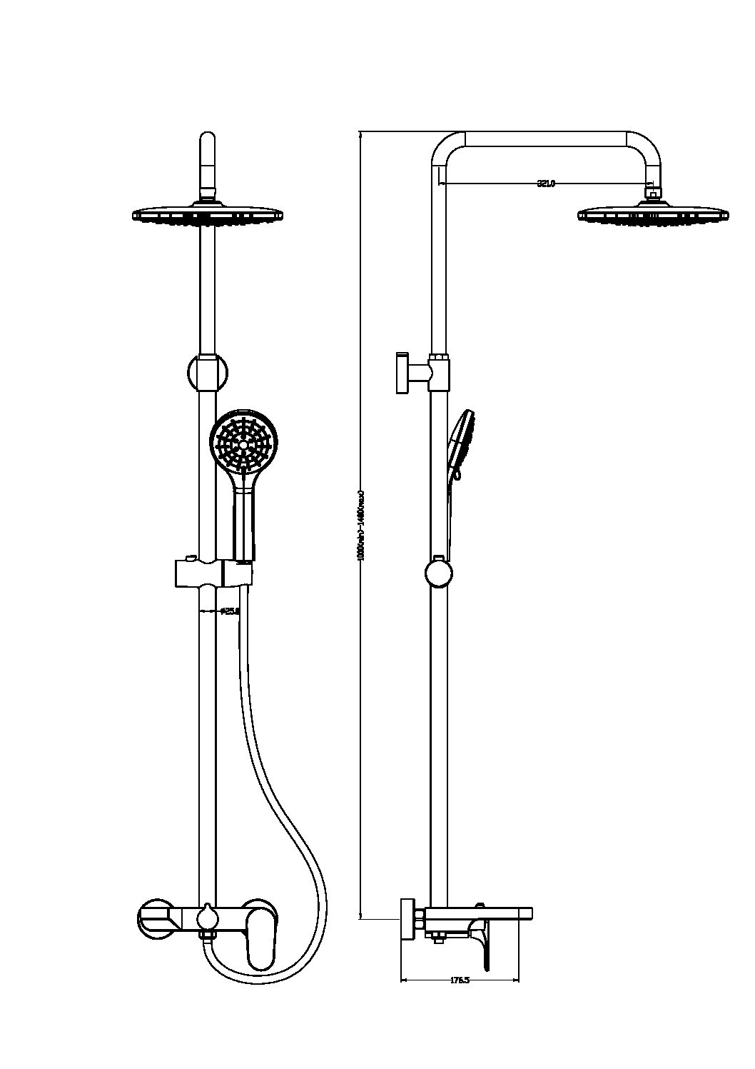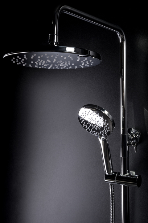 Комплект поставки: держатель для душа, переключатель потоков, верхний душ, ручной душ, душевой шланг, смеситель.