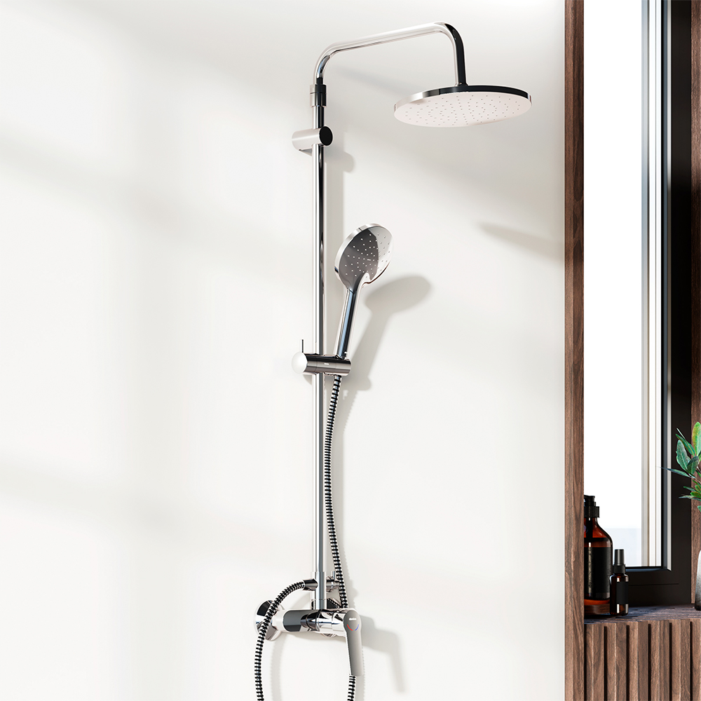Стильный и лаконичный дизайн душевой системы Jupiter прекрасно подойдет как для классической так и для современной ванной комнаты. Благодаря телескопической штанге с диапазоном регулировки в 400 мм водные процедуры будут одинаково комфортны абсолютно для всех членов семьи. Угол наклона тропической лейки можно регулировать. Благодаря большому количеству форсунок с микроотверстиями которые распределяют поток мягкими равномерными струями вы сможете наслаждаться расслабляющим эффектом настоящего домашнего SPA. Переключайте потоки воды между ручной и тропической лейками плавным поворотом дивертора. Инновационное покрытие High Gloss надежно защищает хромовую поверхность душевой системы от мелких повреждений и сохраняет ювелирный блеск на долгие годы.