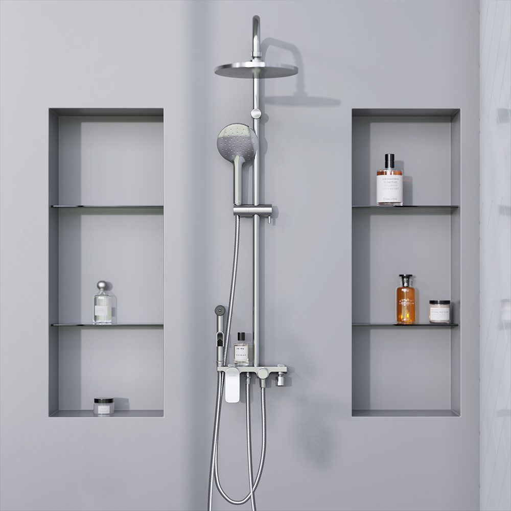 Многофункциональные душевые системы со смесителем-полкой ручным верхним и гигиеническим душами – самый универсальный продукт для всех