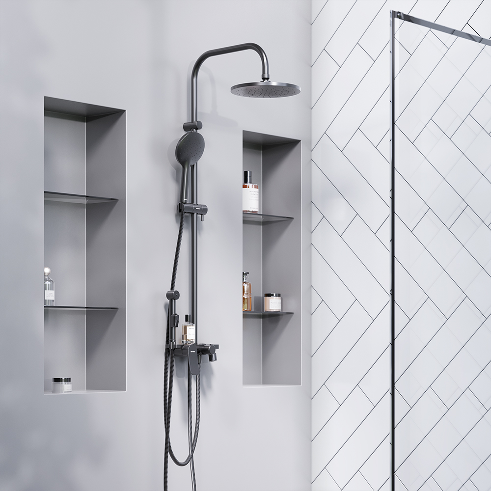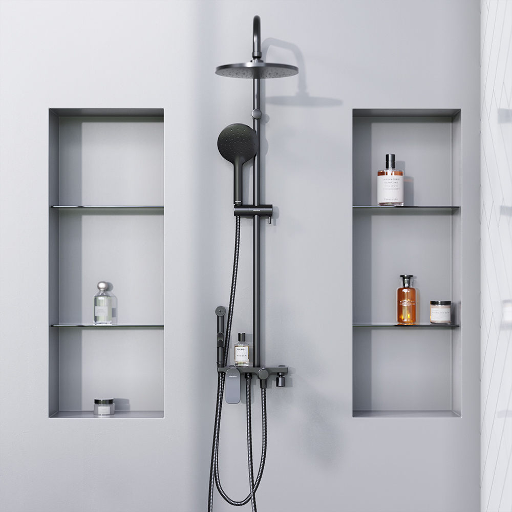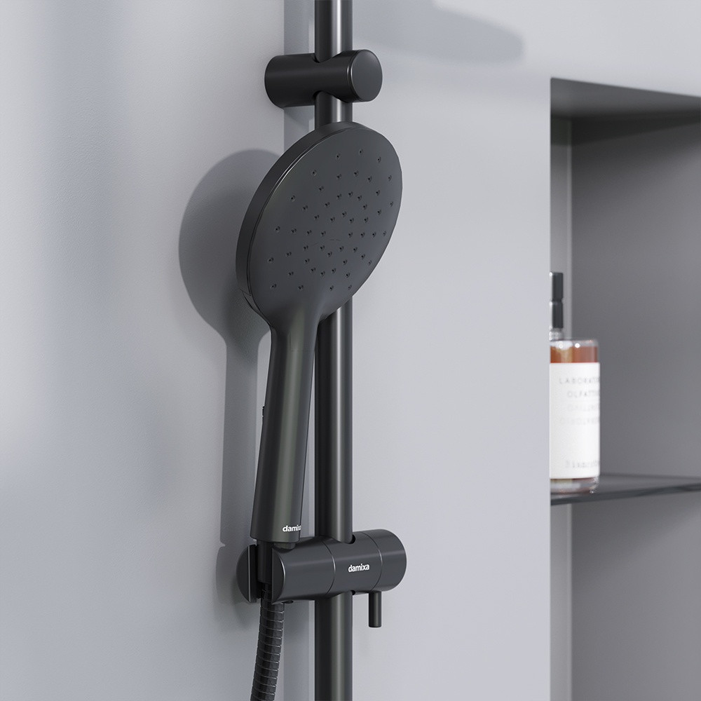 Ультра черная матовая душевая система станет центром притяжения ванной комнаты. Наличие нескольких аксессуаров в одном решении значительно сэкономит ваше время и средства.