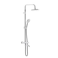 Стильный и лаконичный дизайн душевой системы Jupiter прекрасно подойдет как для классической так и для современной ванной комнаты. Максимальная безопасность: термостатический картридж 35мм обеспечивает точную настройку температуры и напора воды. Благодаря телескопической штанге с диапазоном регулировки 400 мм ежедневные процедуры будут одинаково комфортны для людей любого роста. Большое количество форсунок с микроотверстиями которые распределяют поток мягкими равномерными струями обеспечит вам расслабляющий эффект настоящего домашнего SPA. Переключайте потоки воды между ручной и тропической лейками плавным поворотом дивертора а между смесителем и ручной лейкой - поворотом излива на 90 градусов. Угол наклона тропической лейки можно регулировать. Инновационное покрытие High Gloss надежно защищает хромовую поверхность душевой системы от мелких повреждений и сохраняет ювелирный блеск на долгие годы.