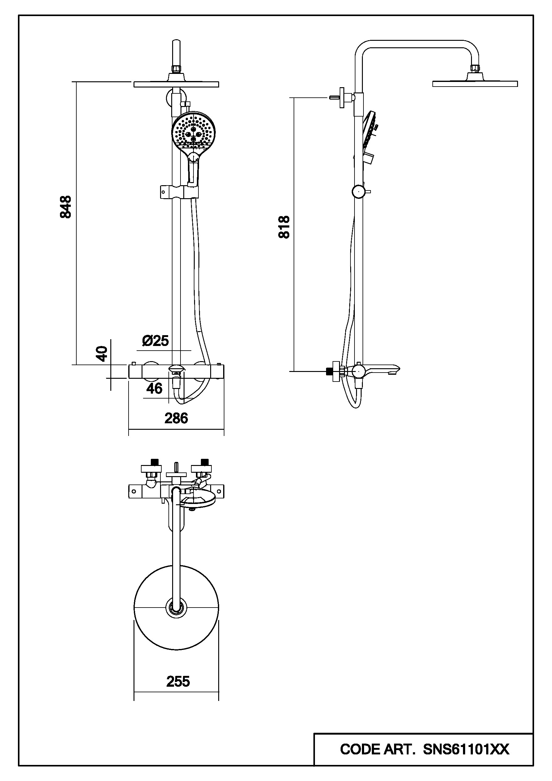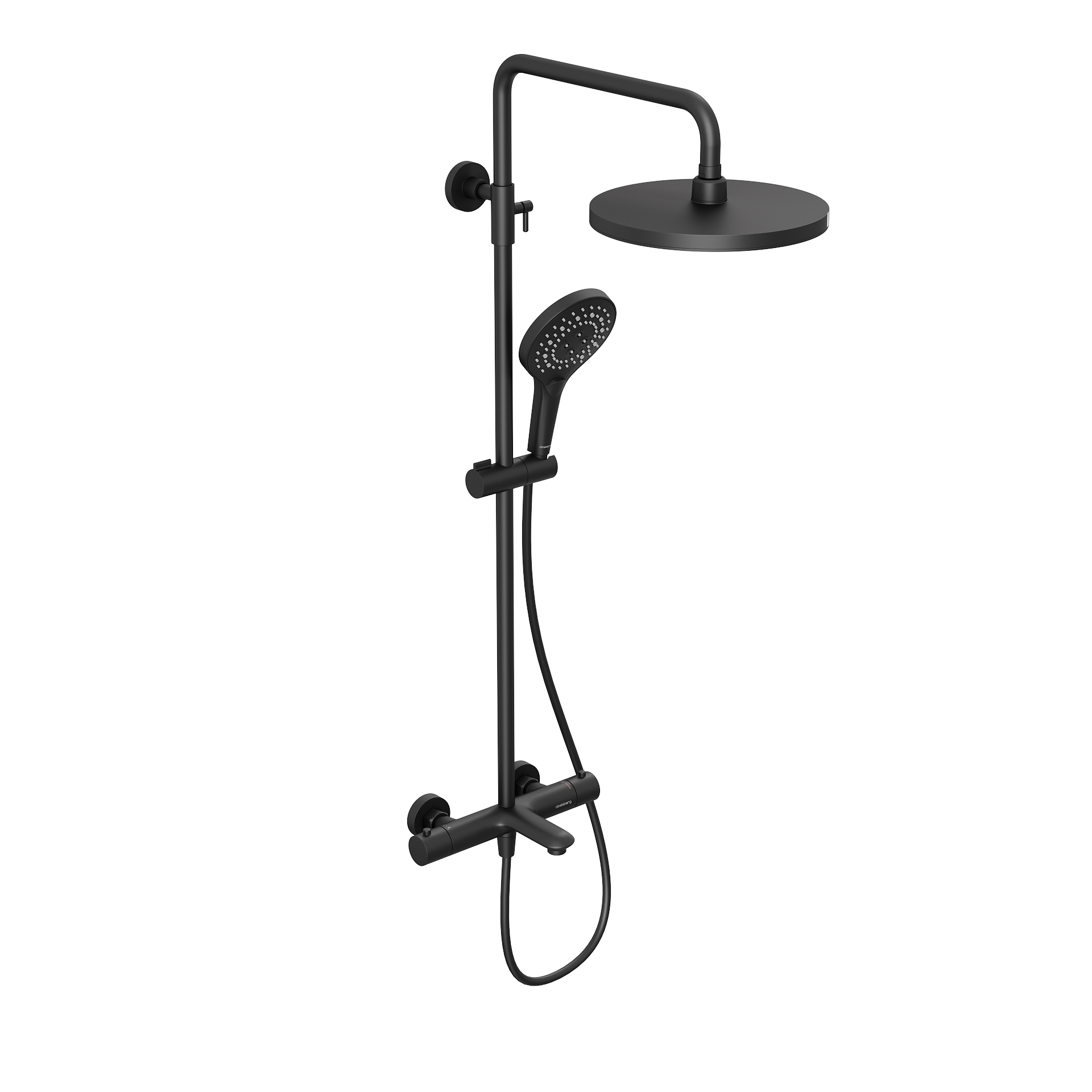 Комплект поставки: смеситель с термостатом, штанга, верхний и ручной душ с держателем, шланг для душа, эксцентрики.