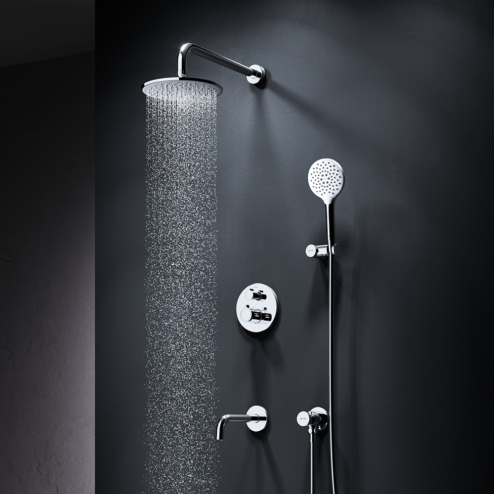 Набор встроенного оборудования X-Joy - идеальное решение для вашей ванной комнаты. Встроенный механизм освобождает ванную комнату от лишних деталей превращая пространство в идеальное место для себя. Набор включает в себя: верхний тропический душ 22 см ручной душ держатель ручного душа и смеситель.