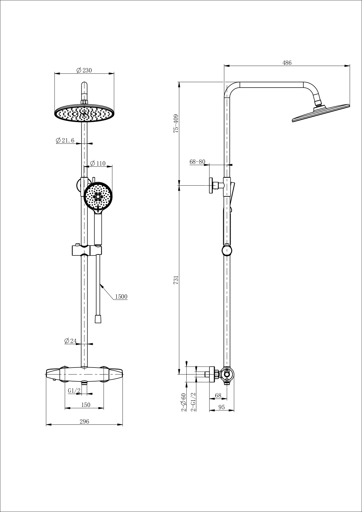 | Оснащение | смеситель / душевой шланг / держатель для душа / душевая штанга / верхний душ / душевая лейка / эксцентрики / монтажный комплект |
