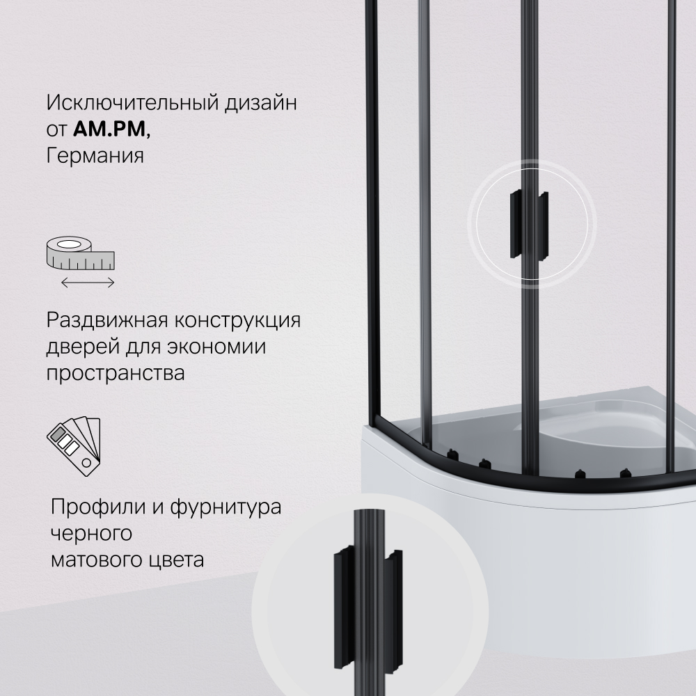 Душевой уголок AM.PM Gem 90x150x90 W90G-401A090BT профиль черный