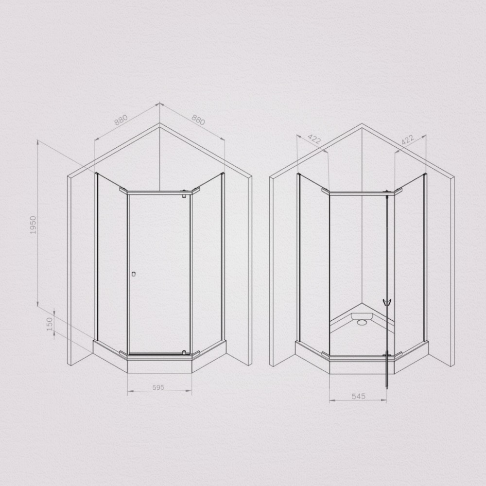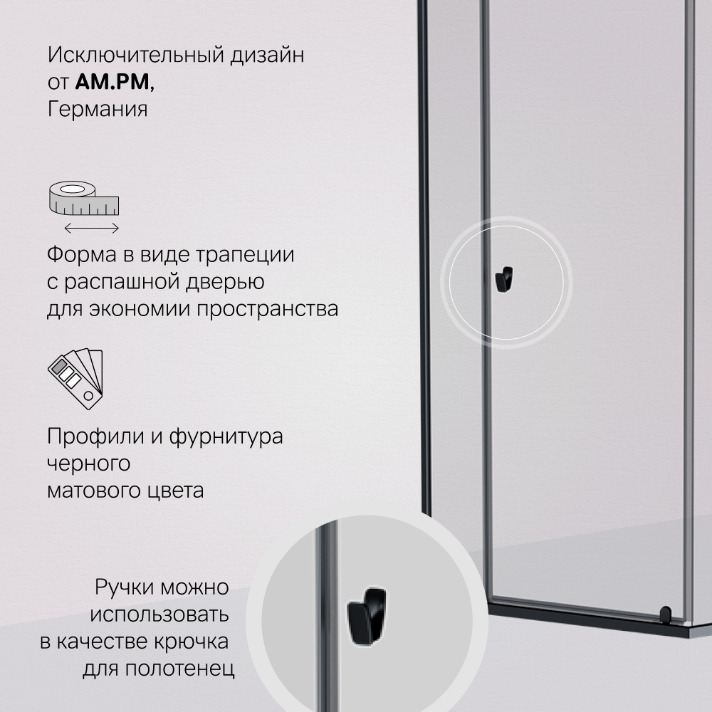 Душевой уголок AM.PM Sunny 90x195x90 W87G-405-9090-BT профиль черный
