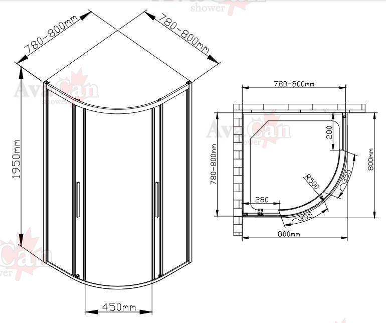 Душевой уголок AvaCan 80x195x80 HC80 профиль хром