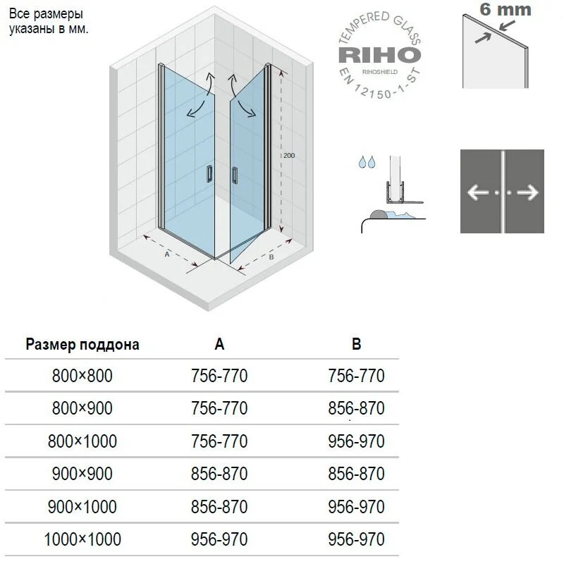 | Толщина полотна двери, мм | 6 |