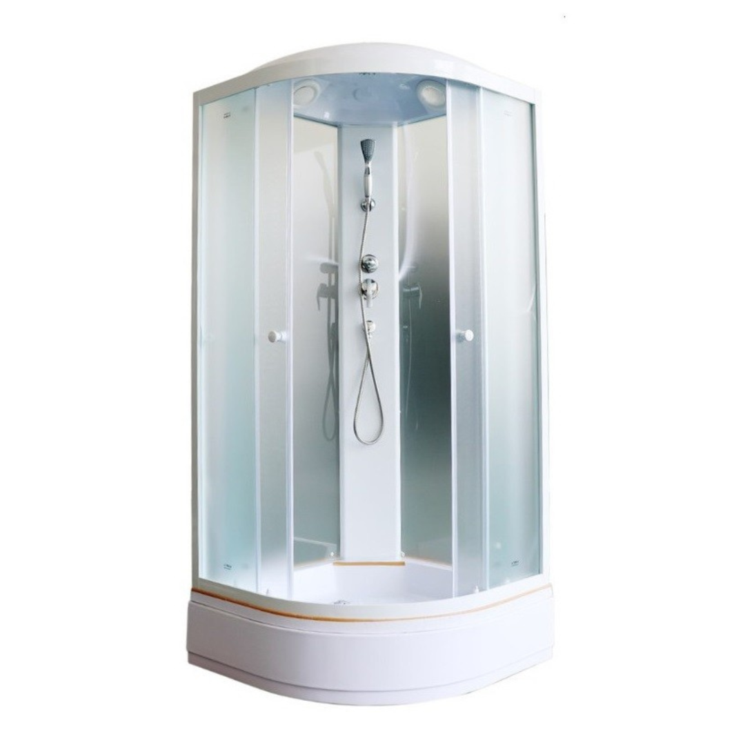 Поддон: средний, 26 см, полукруглый, с бортиком (система аквастоп).Материал - АБС пластик, армированный стекловолокном. Дополнительная ножка конструкции. Противоскользящее покрытие. Съёмный передний экран на защелках.