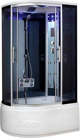 Поддон: 100% цельный акрил армирован стекловолокном, на усиленном каркасе.Высота 48см. Сливная система clik-clak. Диаметр сифона 50mm. Сьемный экран.Задние стенки: зеркальное тонированное ударопрочное стекло 5мм.Передние стекла:прозрачное тонированное, 5мм, закаленное, ударопрочное. Конструкция дверей: раздвижная.Центральная панель:зеркальное тонированное ударопрочное стекло 5мм. Крыша: акриловая. Роллики, ручки: хромированные из металической стали.Профиль: анодированный, алюминиевый, хромированный, матовый. Комплектация: сенсорная панель управления,FM радио; стеклянная полочка; электр. вентиляция; подсветка верхняя и боковая; однорычажный четырехрежимный смесительгидромассаж спины (6 джет); гидромассаж ног; верхний душ; ручная лейка на держателе. Предлаем Вам купить в САНКОРС по лучшей цене!