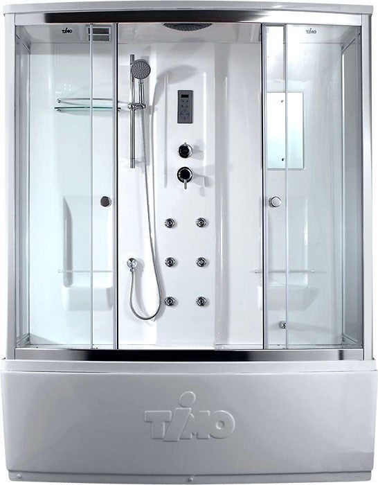 Поддон: 100% цельный акрил армирован стекловолокном, на усиленном каркасе.Высота 60см. Сливная система clik-clak. Сьемный экран(из 3х частей)Задняя стенка: акриловая, монолитная, армированная. Крыша: акриловая. Роллики, ручки: хромированные из металической стали.Передние стекла: прозрачное, 6мм, закаленное, ударопрочное. Конструкция дверей: раздвижная.Профиль: анодированный, алюминиевый, хромированный, глянцевый. Комплектация: сенсорная панель управления,FM радио; стеклянные полочки; зеркало;электр. вентиляция; подсветка; однорычажный четырехрежимный смесительгидромассаж спины (6 джет); верхний душ; ручная лейка на регулируемой по высоте штанге; наполнитель ванны. Предлаем Вам купить в САНКОРС по лучшей цене!