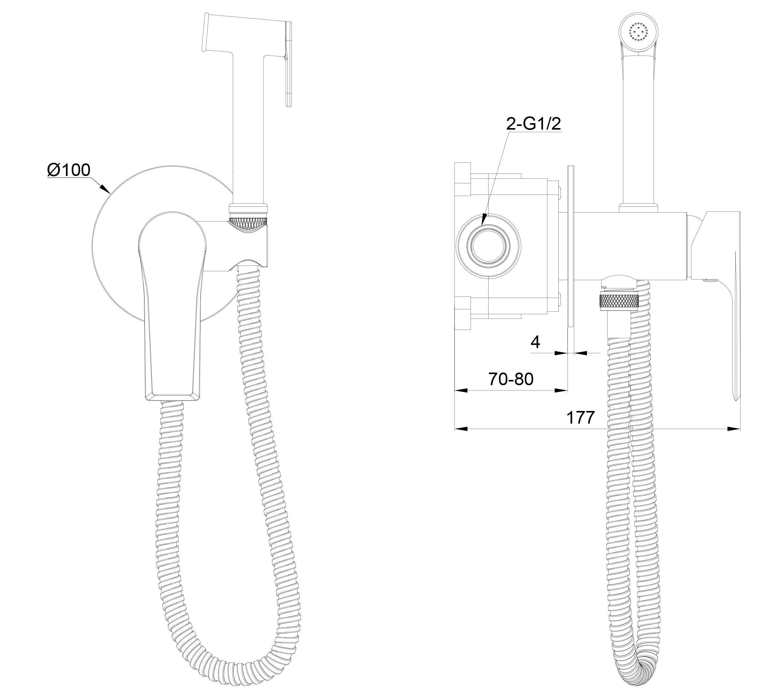 | Оснащение | смеситель / душевой шланг / держатель для душа / лейка гигиенического душа / монтажный комплект |