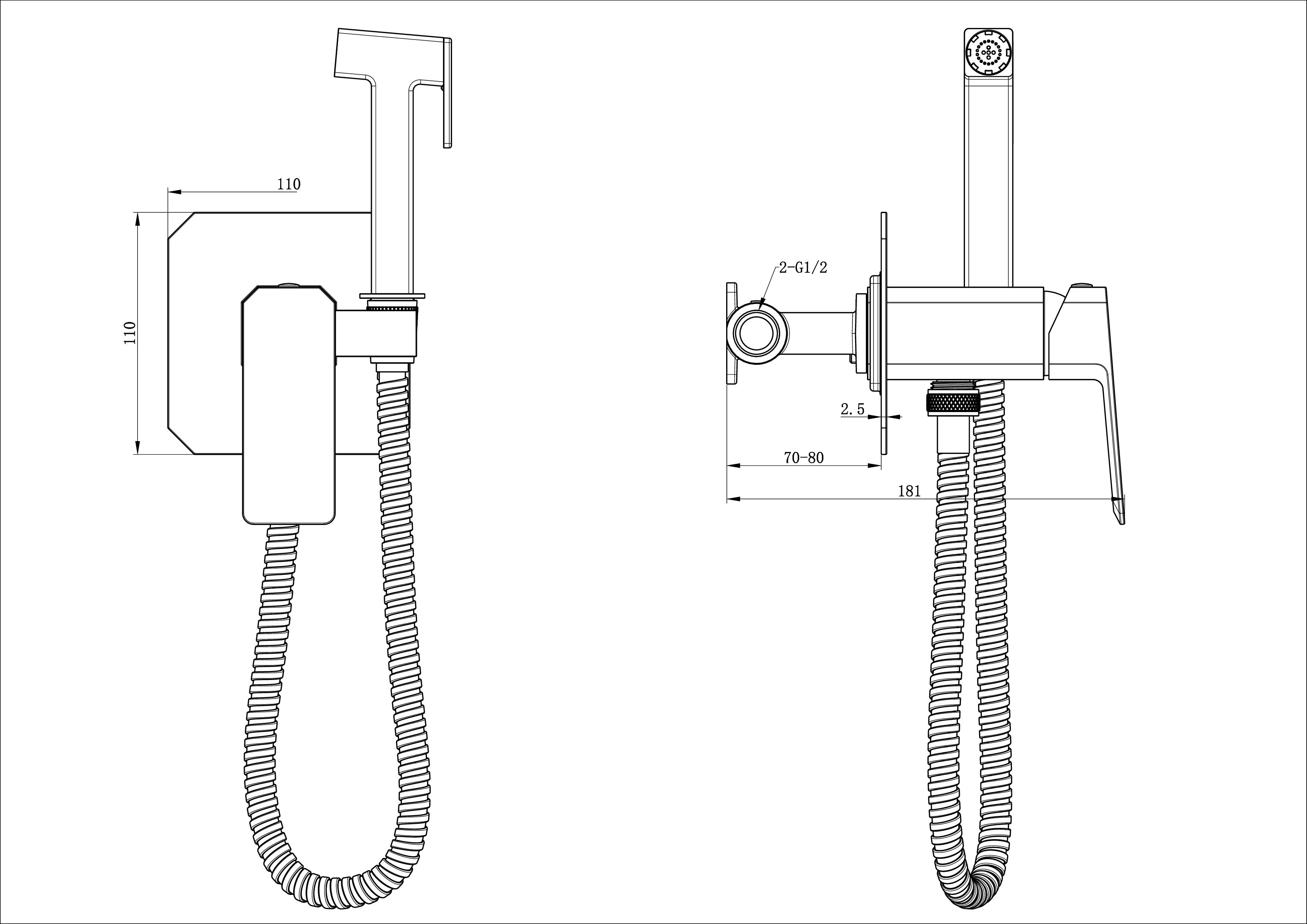 | Оснащение | смеситель / душевой шланг / держатель для душа / лейка гигиенического душа / монтажный комплект |