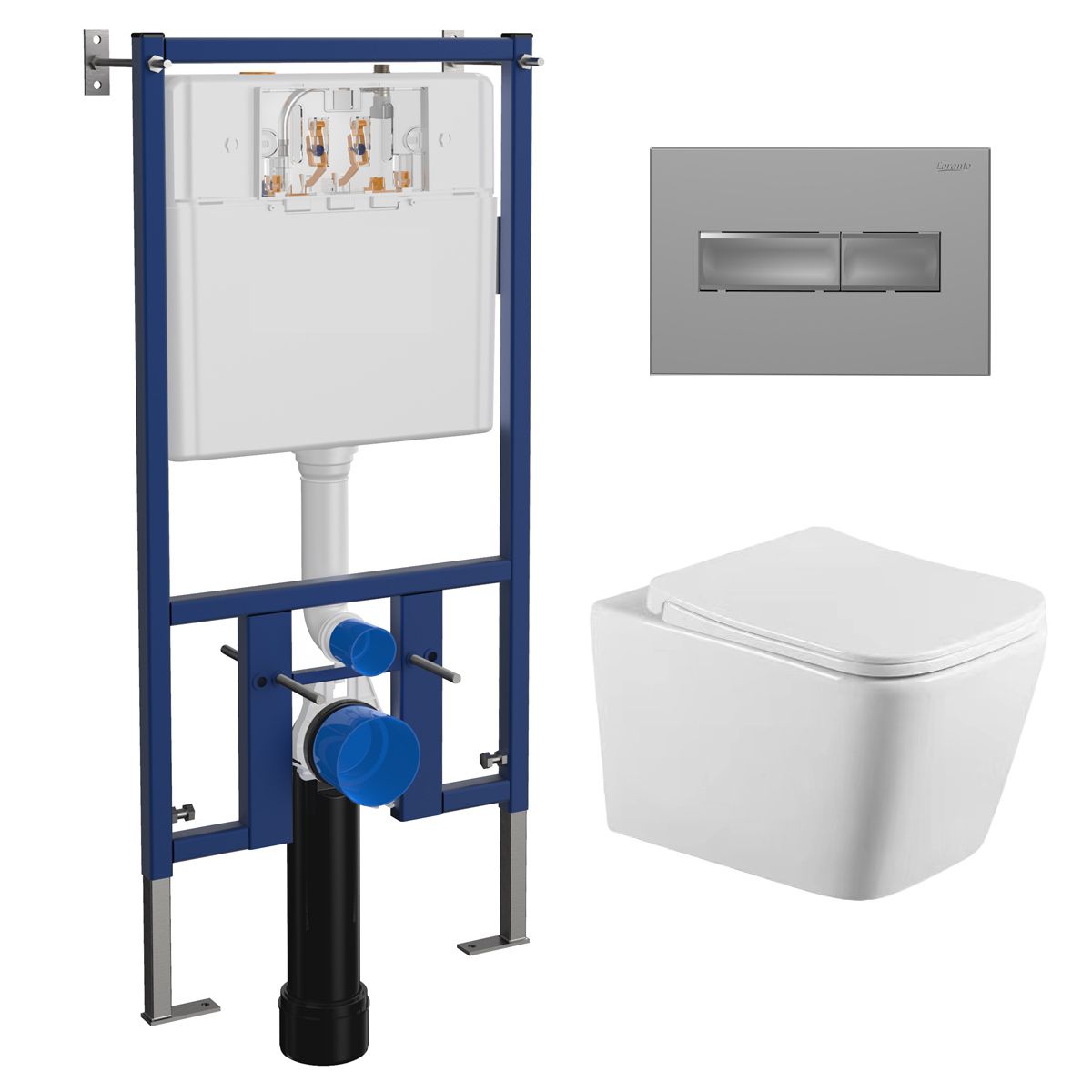 Сет LORANTO Инсталляция с кнопкой Line хром матовая с унитазом ANTE с сиденьем микролифт (4501+7321+CS-2216HM)