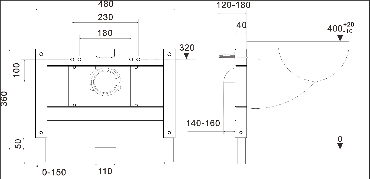 Исполнение инсталляции в виде рамы позволяет использовать ее как при капитальной (бетон, кирпич), так и некапитальной стене (гипсокартон, пеноблоки).
