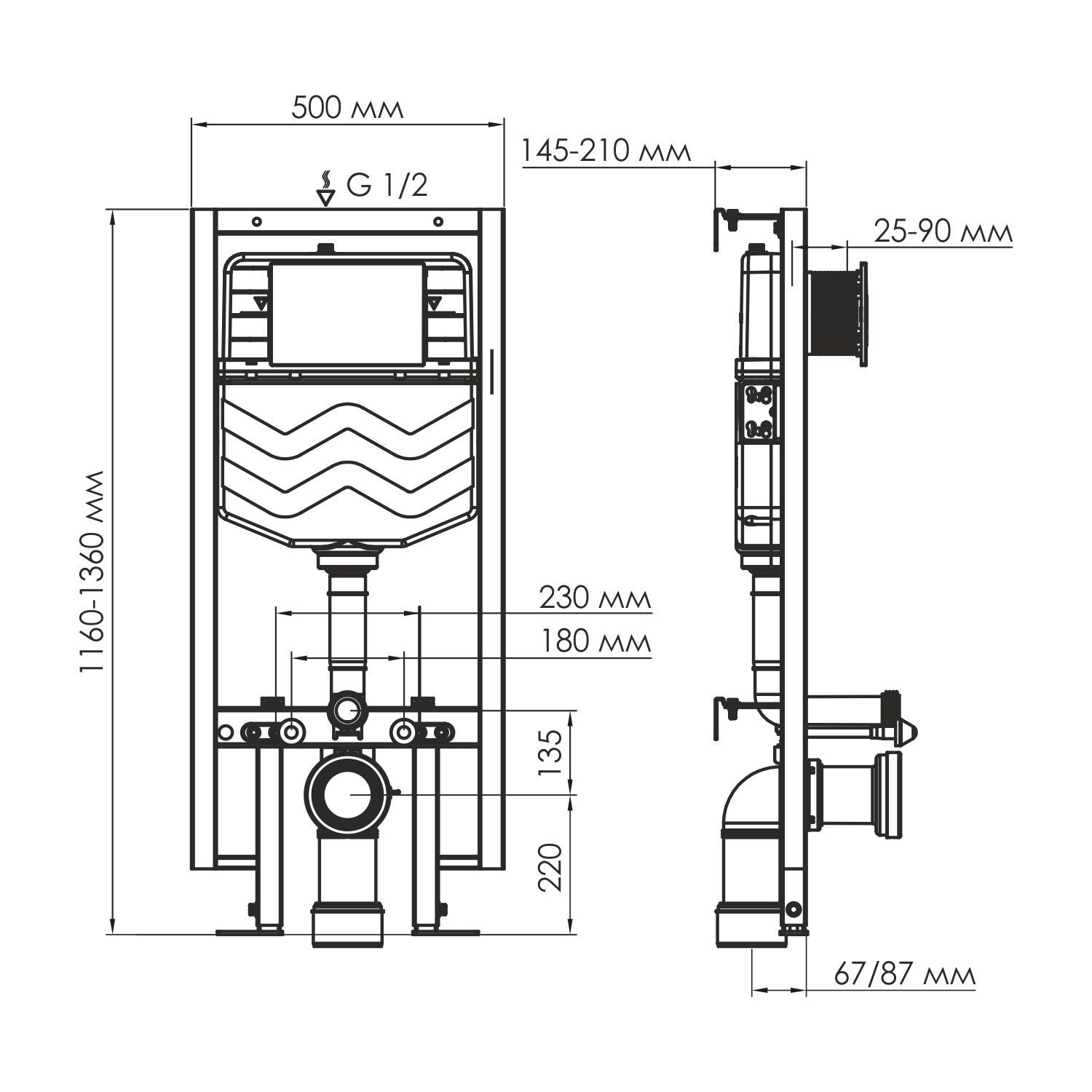 Комплект поставки: система инсталляции, фитинги для подачи и слива воды, защитная шумоизоляционная накладка, крепления для унитаза, выводы для воды, механическая кнопка смыва, набор быстрого монтажа.