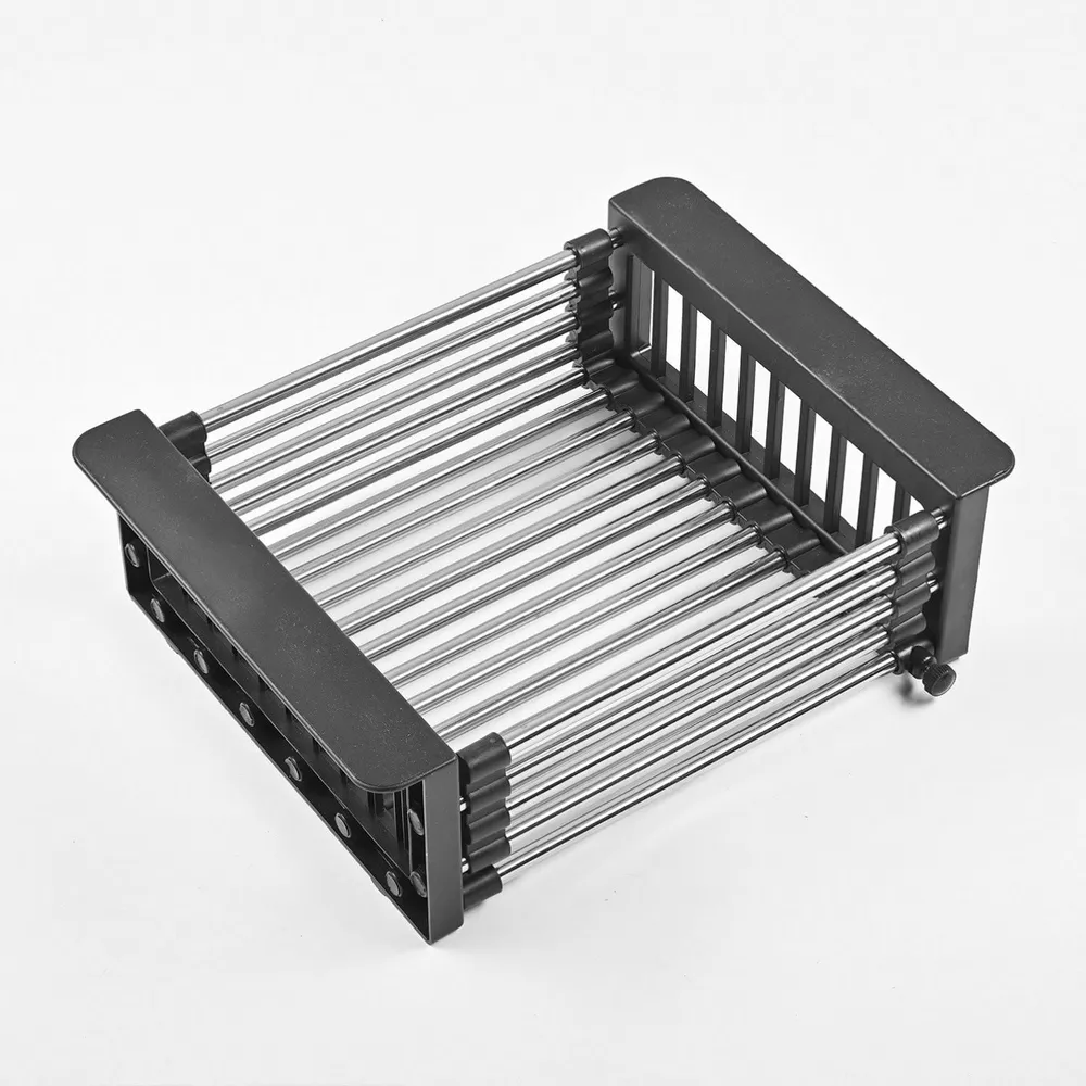 Коландеры Santegro ST17BL (графит), ST17SC (сатин) и ST17GD (золото) — это умные, функциональные и стильные вкладыши для мойки, которые превращают любую раковину в многофункциональную зону для мытья, сушки и подготовки продуктов. Благодаря телескопической конструкции, они автоматически подстраиваются под ширину чаши — от 35 до 50 см, идеально фиксируясь и не шатаются при использовании.
