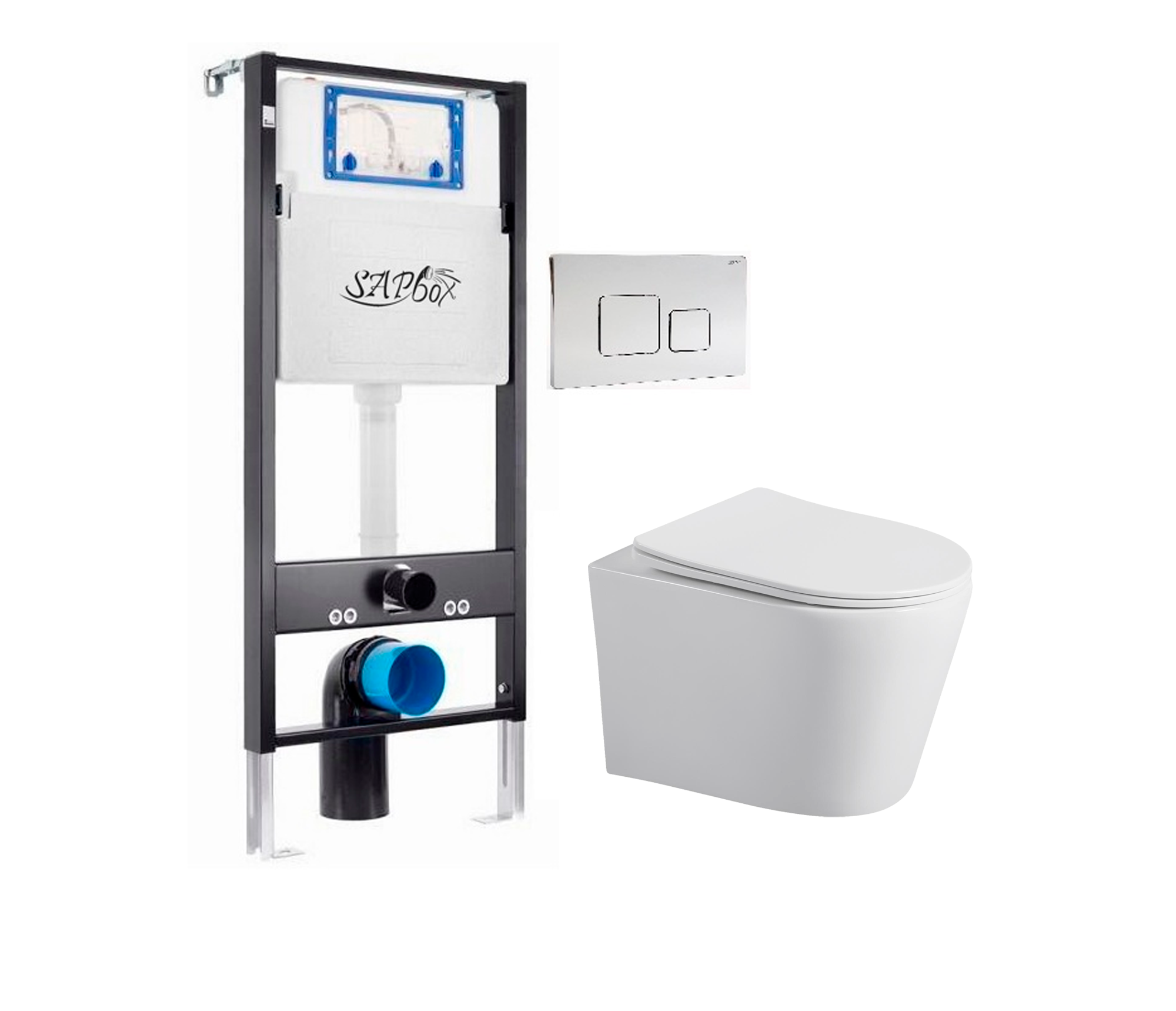 Комплект Sapbox для установки подвесного унитаза Flusso с кнопкой – идеальное решение для создания стильного и функционального туалетного пространства. в комплект входят инсталляция с надежным креплением, подвесной унитаз Flusso с современным дизайном и кнопка для смыва, обеспечивающая легкость в использовании. это решение позволяет экономить место в санузле и придает ему современный вид. установка является простой и быстрой, обеспечивая долговечность и надежность в эксплуатации.